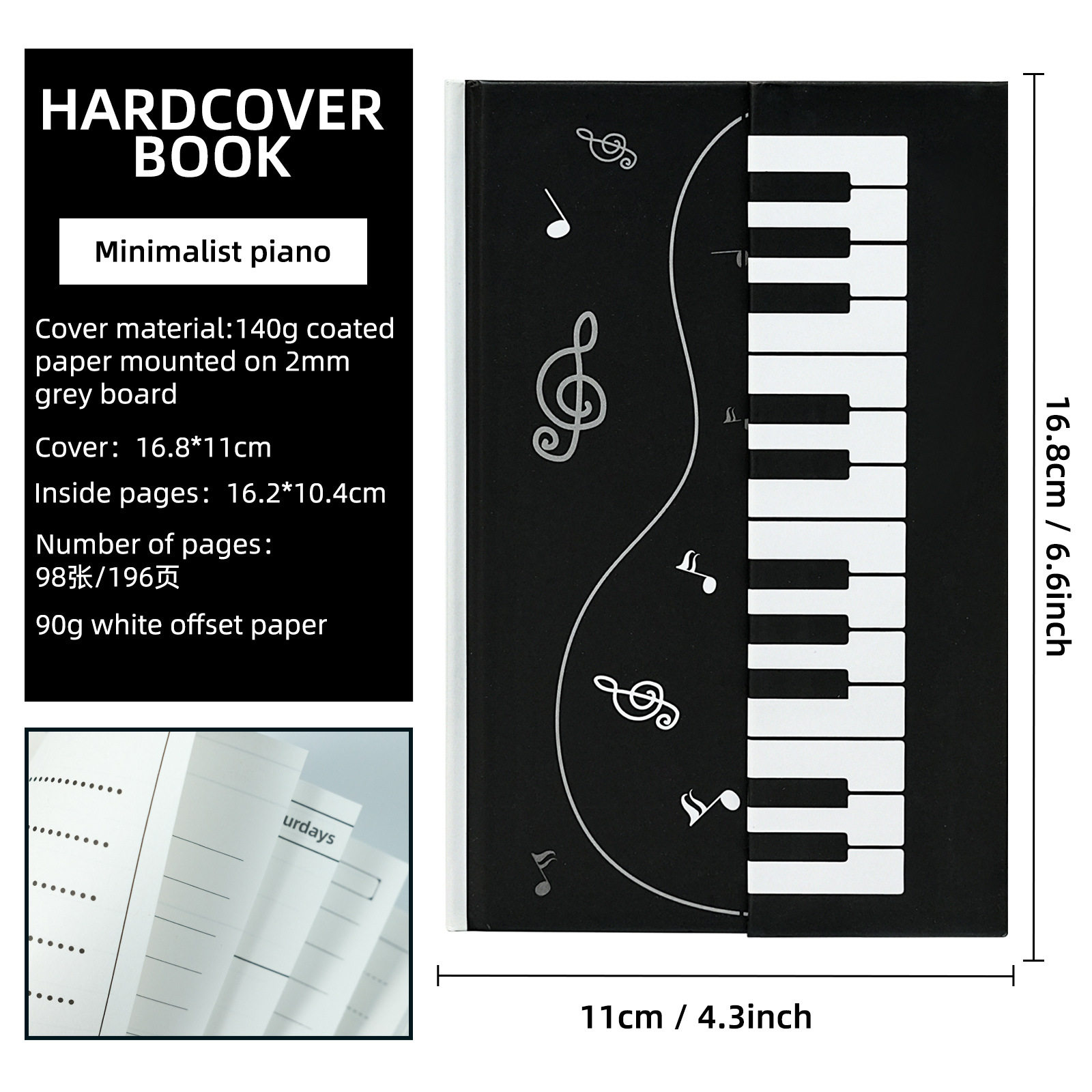 新款创意黑白钢琴硬壳封面笔记本高颜值本册学习日记本手账手册