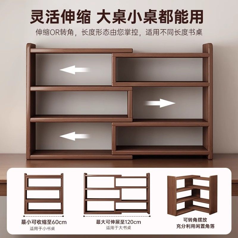 全实木桌面书架桌上置物架办公室收纳改造神器书桌分层伸缩小书柜