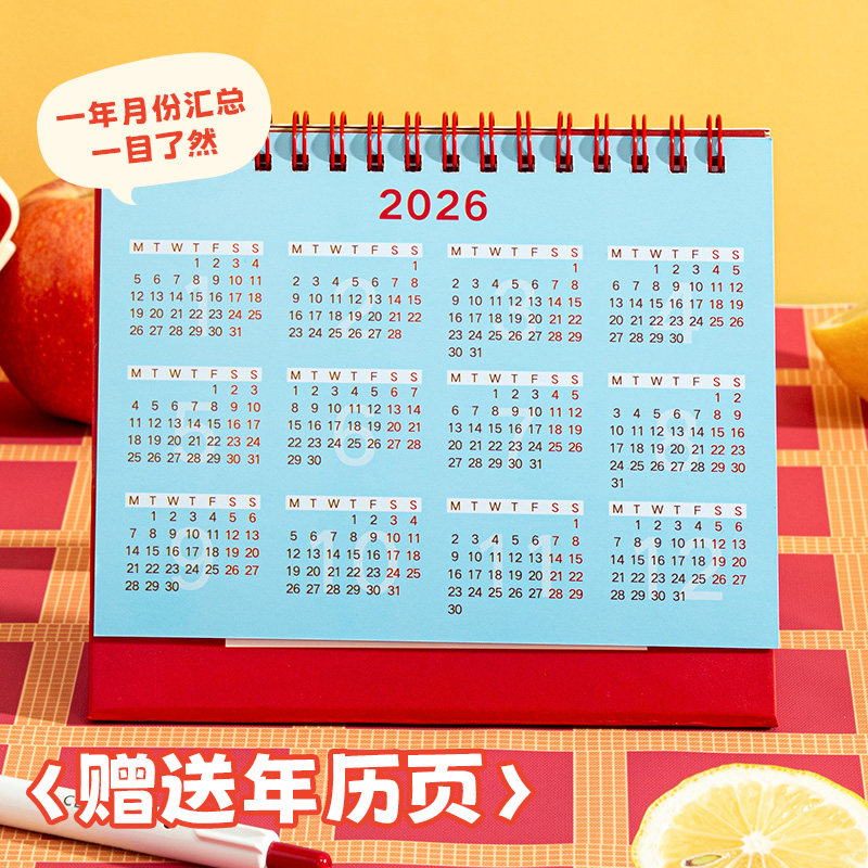 2026年新款台历创意卡通日历全年马年迷你小台历桌面摆件办公室学生每日计划表工作自律打卡记事mini计划月历