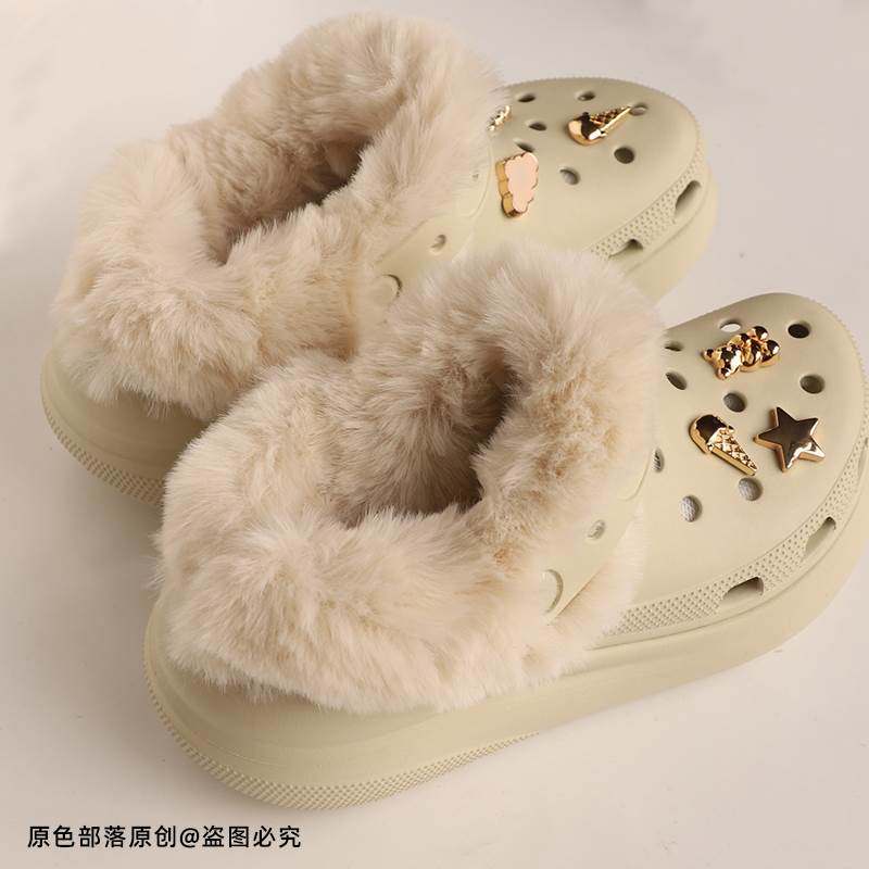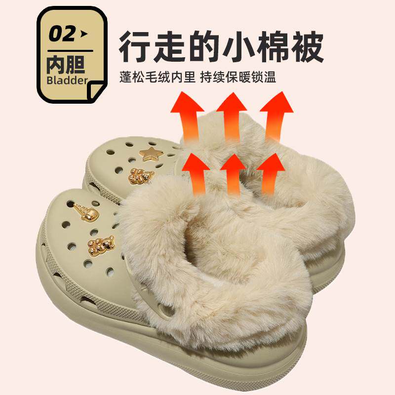 洞洞鞋毛绒棉内胆适配crocs卡骆驰加绒冬天云朵秋泡芙冬季鞋花