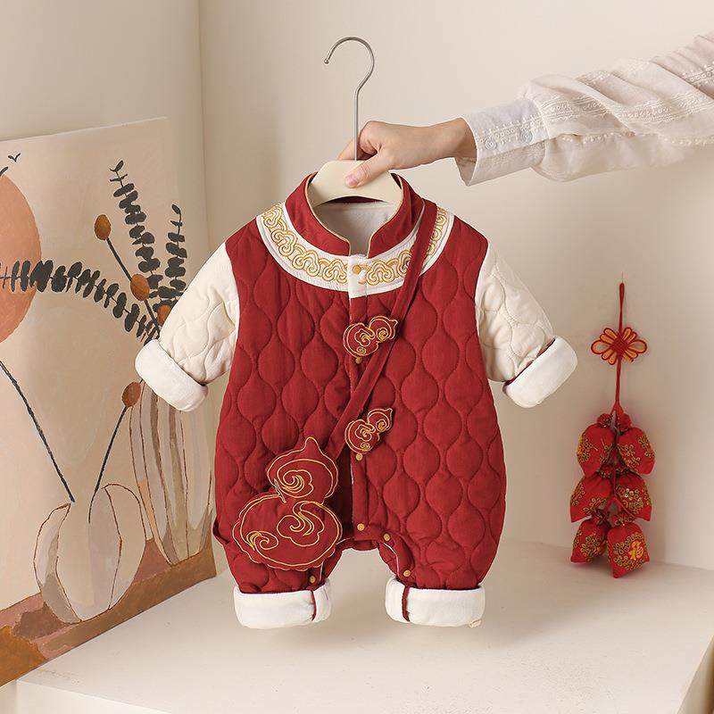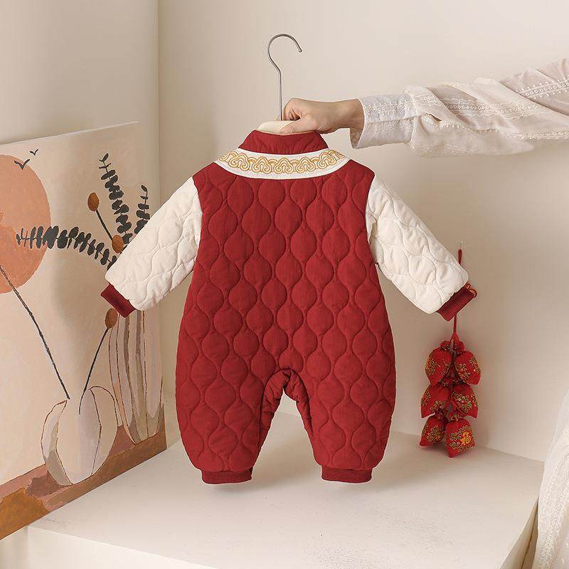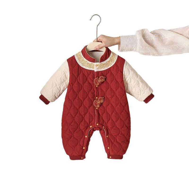 2026新生婴儿秋冬装夹棉连体衣宝宝百天满月新中式加绒拜年服
