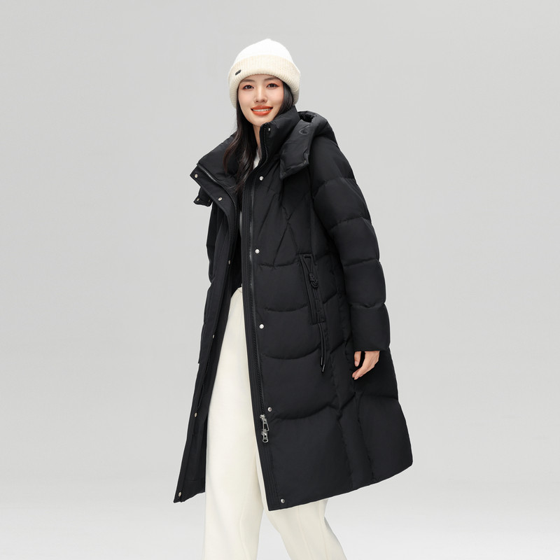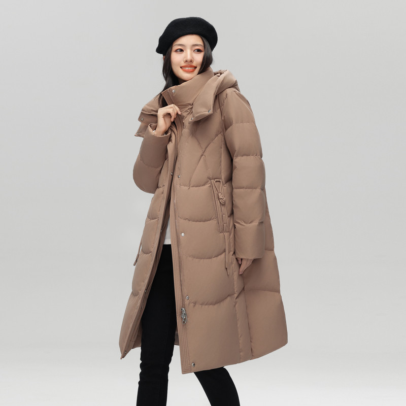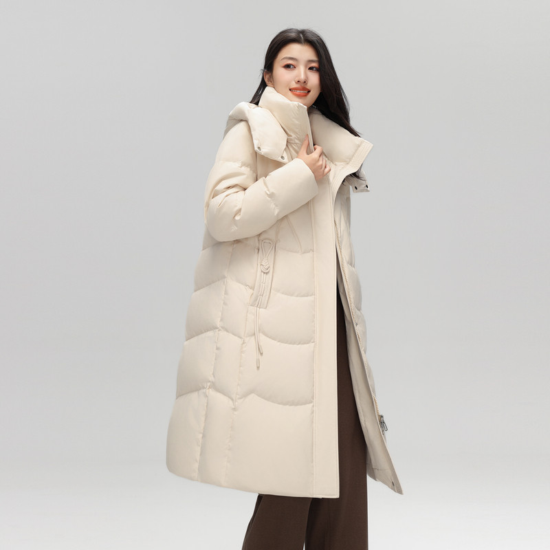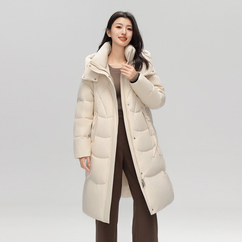 雪中飞2025冬新款女士中长款羽绒服可脱卸帽保暖时尚绳结重磅
