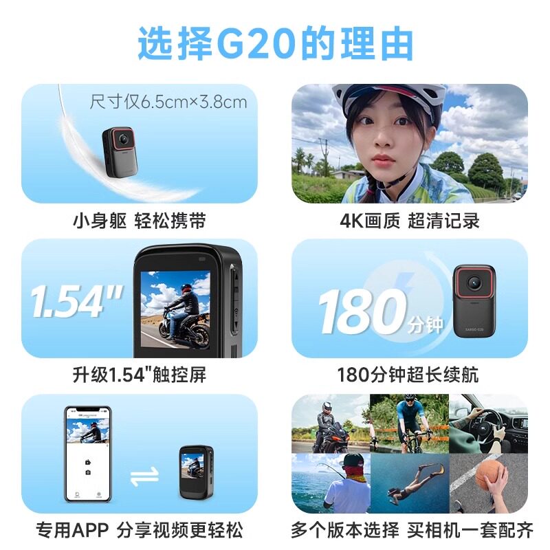 山狗G20拇指运动相机高清摩托车行车记录仪骑行360头盔防抖摄像机