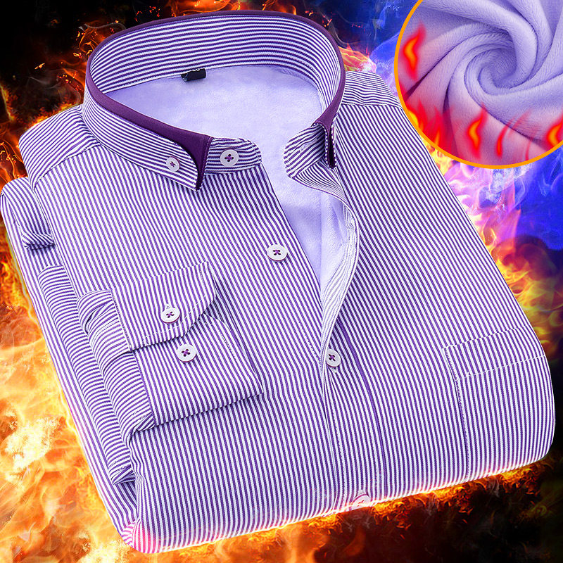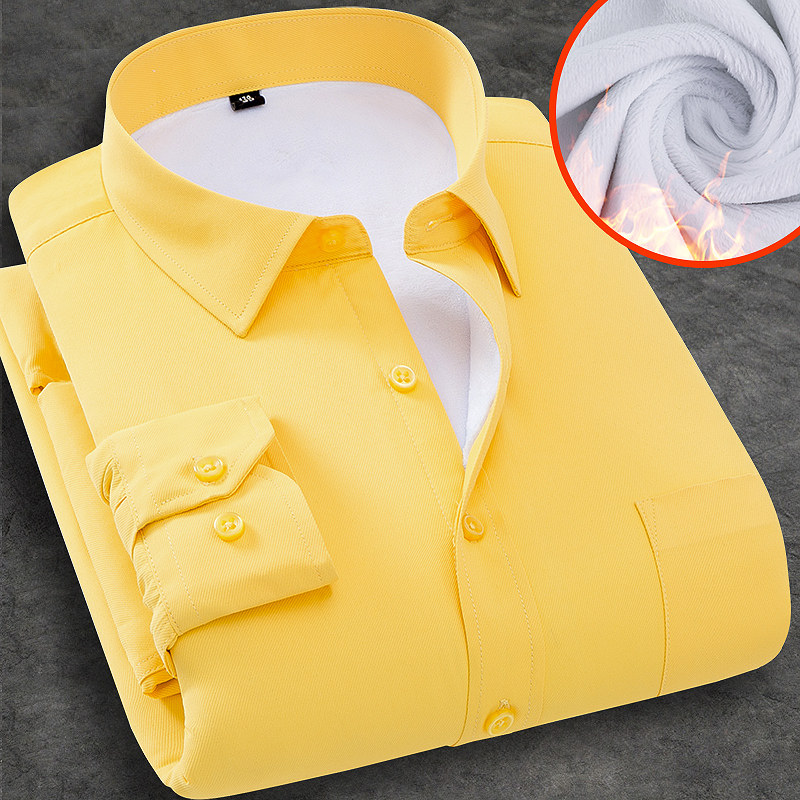 冬季男士商务加绒加厚保暖衬衣结婚本命年红色免烫大码长袖衬衫男