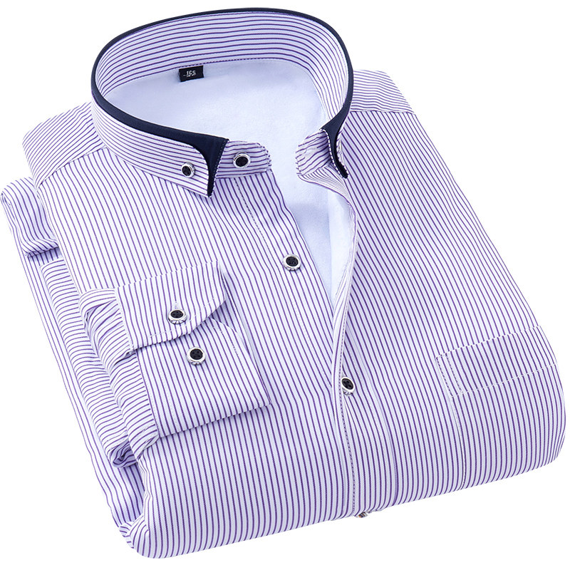 七多男士衬衫修身韩版秋季商务免烫纯色衬衣职业正装白衬衫男长袖
