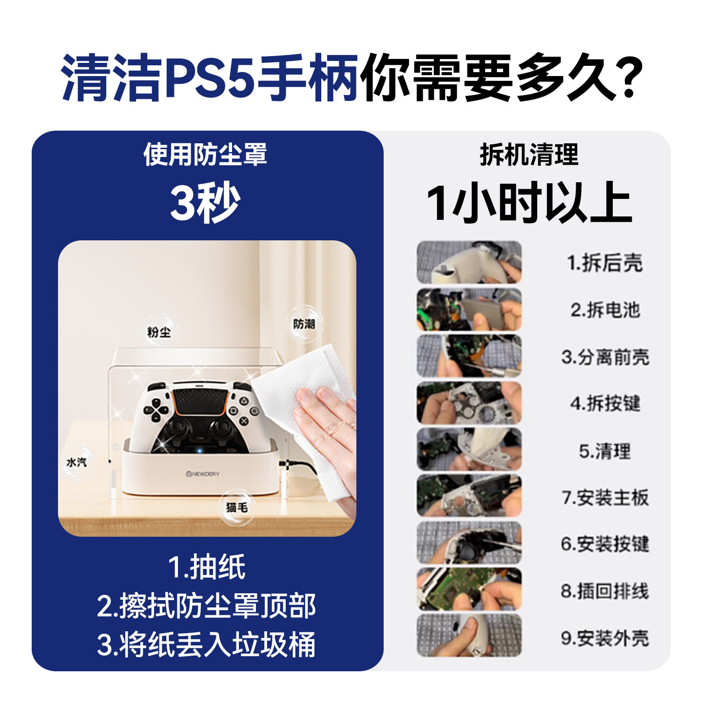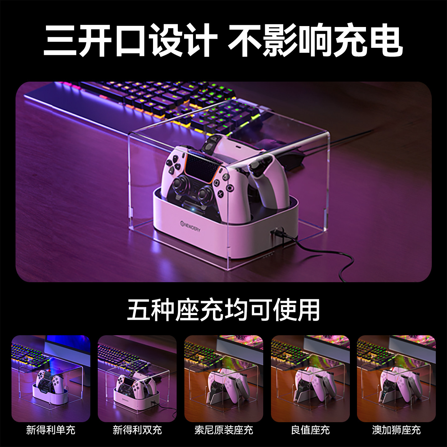 新得利索尼PS5手柄座充防尘罩Slim主机散热罩dse精英手柄充电底座收纳盒亚克力保护壳Pro透明免安装罩套配件