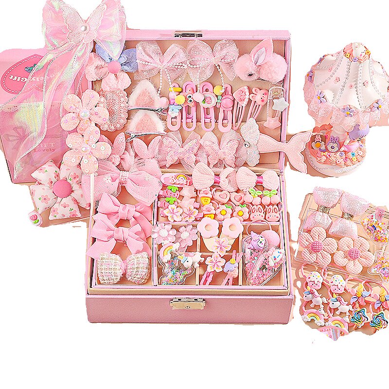 皮筋儿童发饰套装礼盒生日礼物女童发夹公主头饰首饰盒小女孩粉色