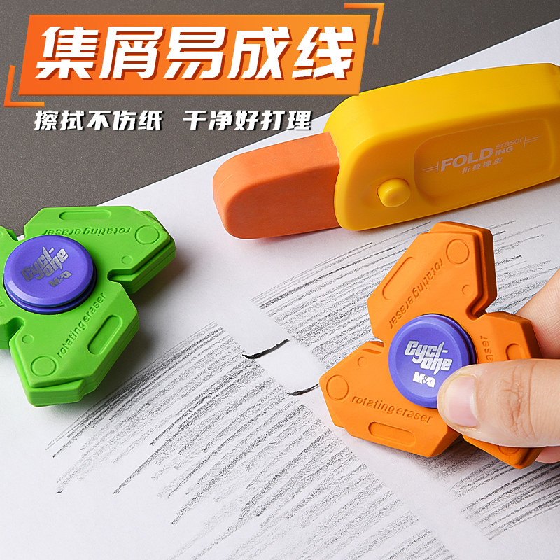 晨光陀螺破风趣味旋转橡皮擦小学生专用集屑橡皮擦少碎屑铅笔折叠橡皮一二年级可爱卡通象皮擦高颜值擦拭干净