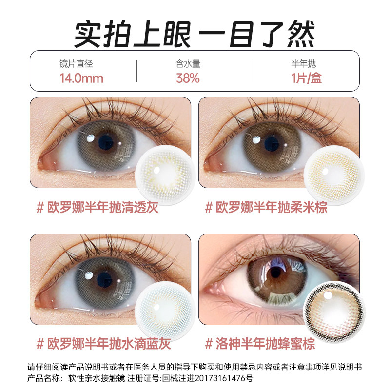 韩国uria idol美瞳半年抛自然黑色棕色小直径近视隐形眼镜带度数