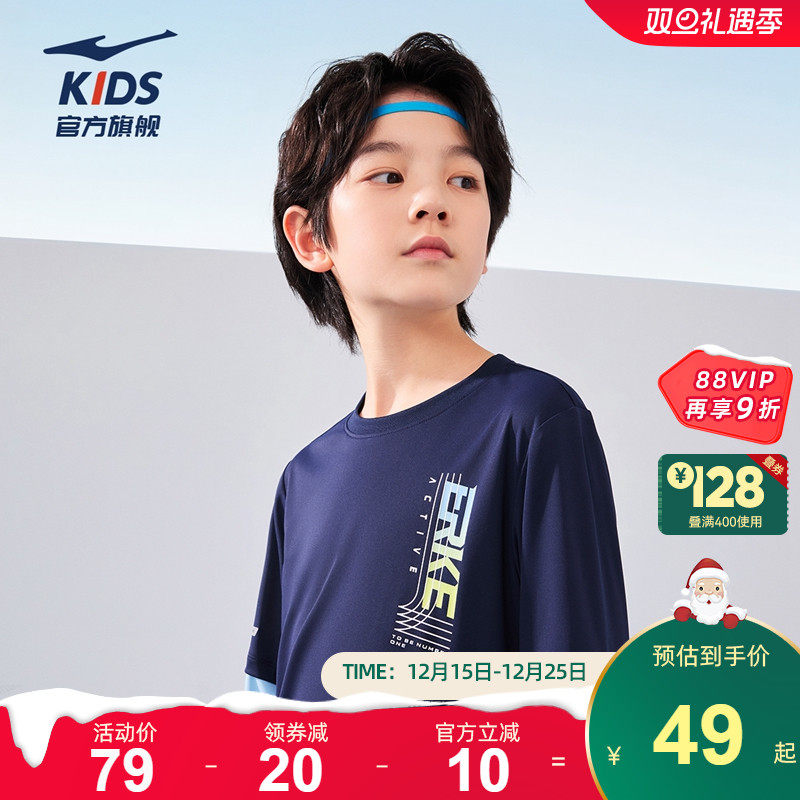 鸿星尔克童装新款男童圆领长袖t恤中大童休闲运动透气青少年上衣