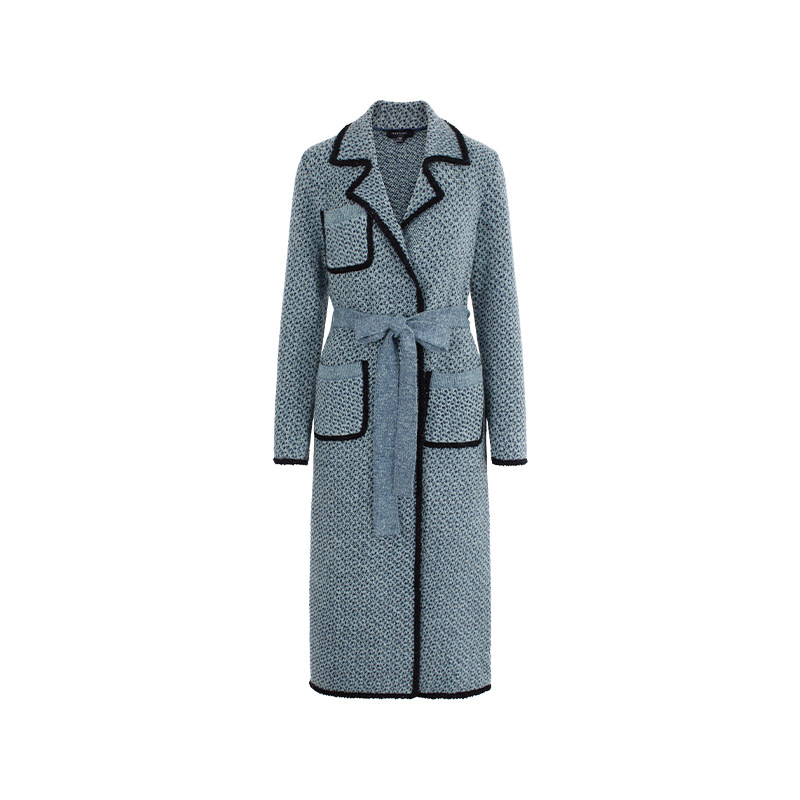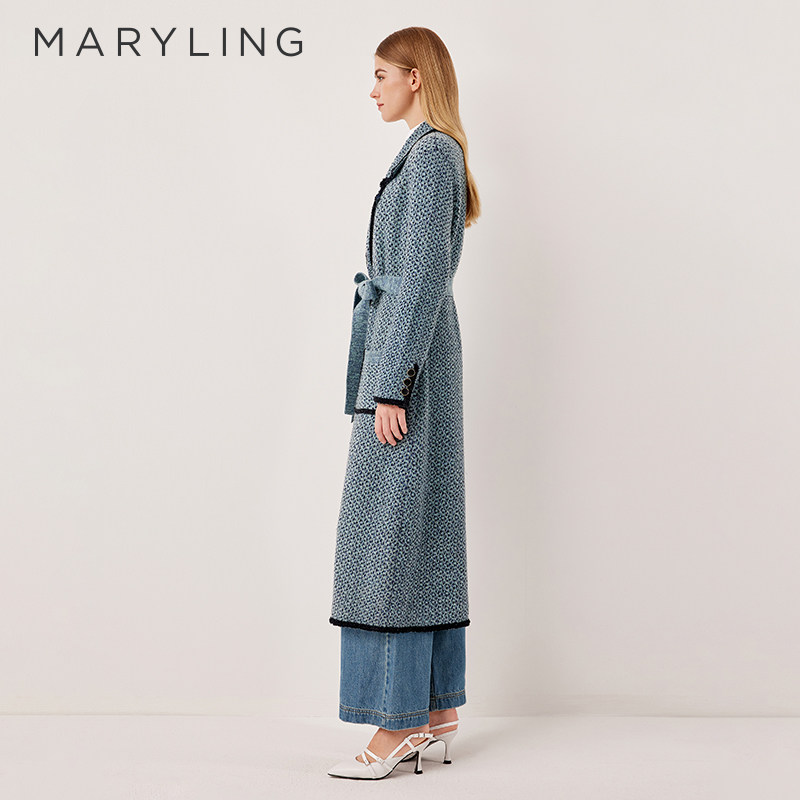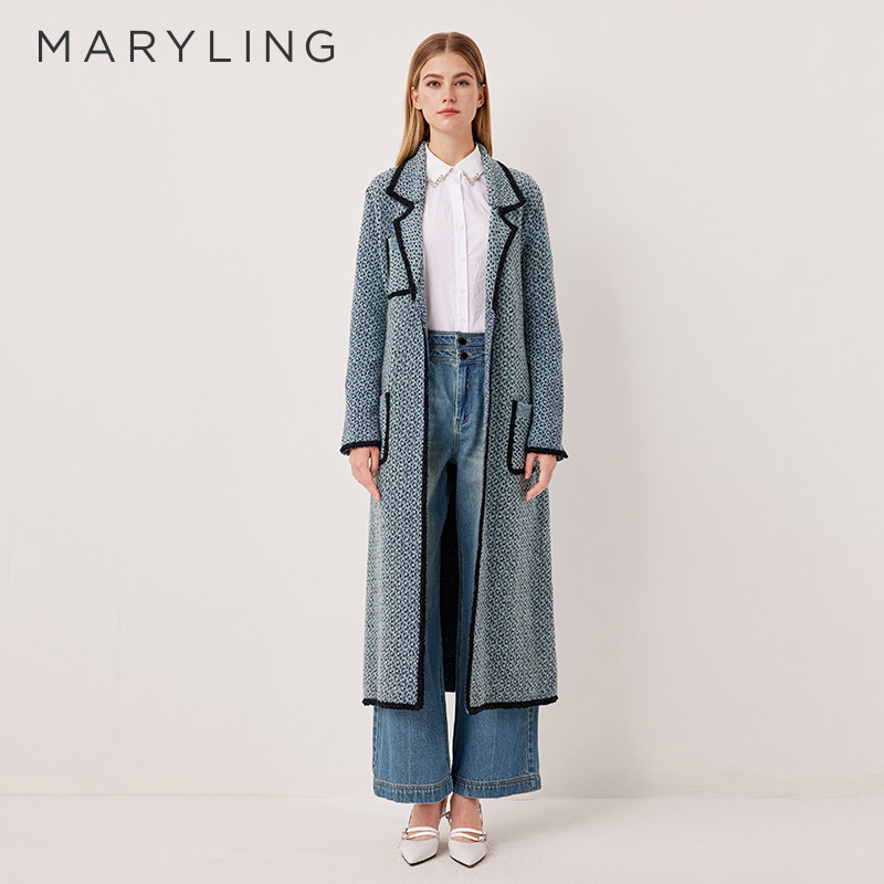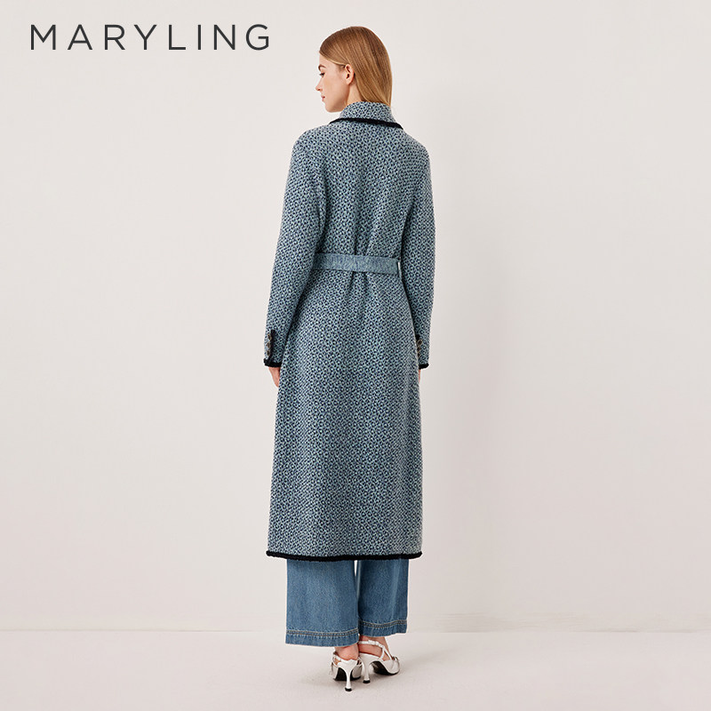 MARYLING玛俪琳2025秋季新品翻领大理石蓝撞色针织外套A1FGW08290