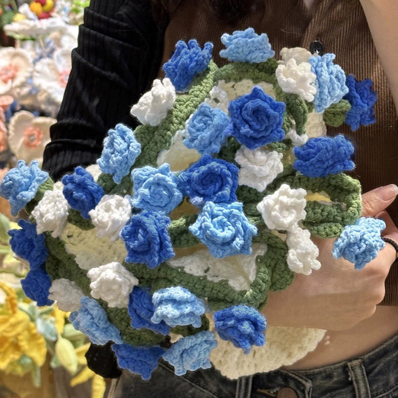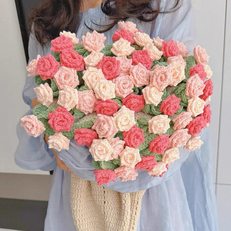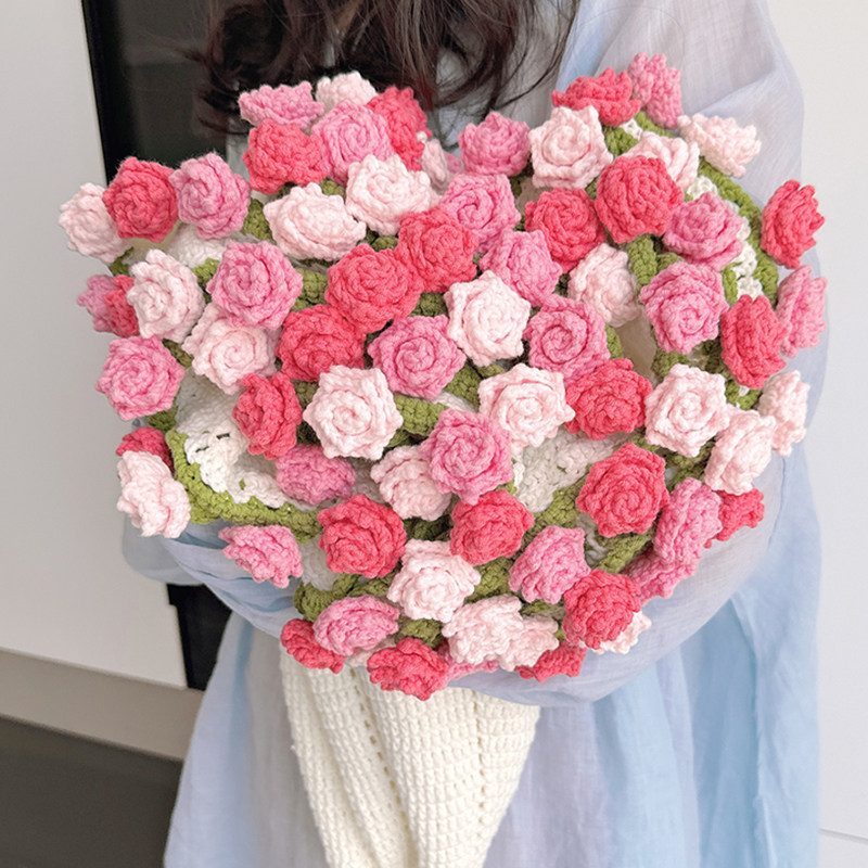 尖角玫瑰花束毯子手工编织diy材料包毛线团钩织花朵毛毯创意礼物