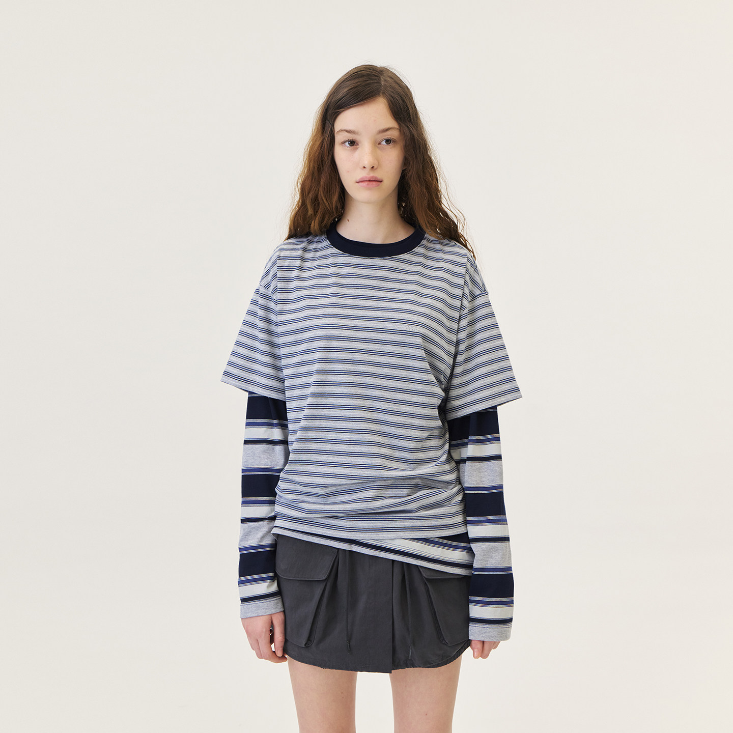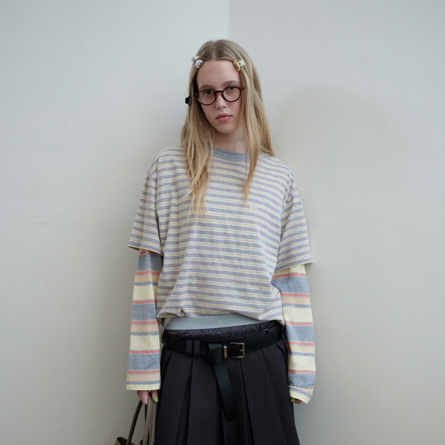 【林娜琏同款】GROVE 2026PS春季新款短袖T恤条纹拼色 GP26TSC21