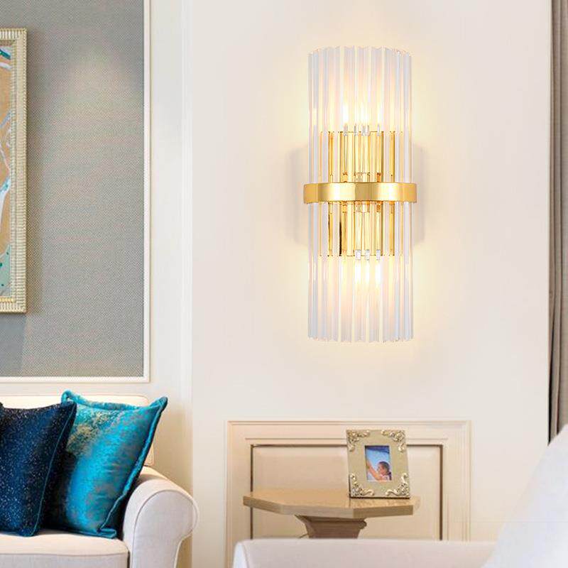 现代轻奢水晶壁灯卧室床头灯不锈钢墙壁挂灯简约酒店过道楼梯壁灯