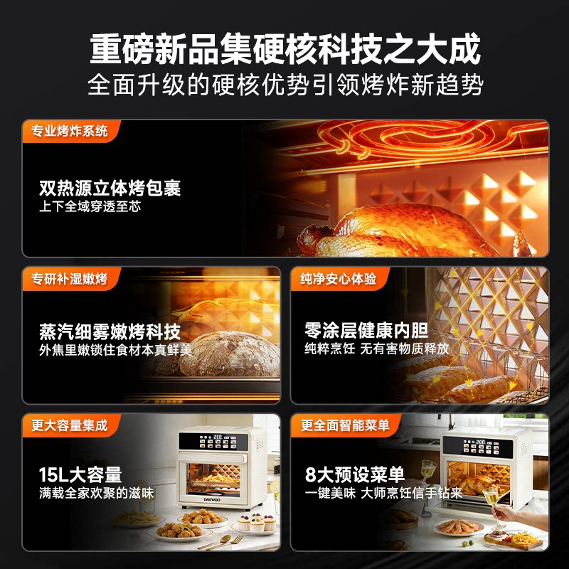 大宇电烤箱家用2026新款空气炸锅烤箱蒸烤一体机烘焙小型大容量