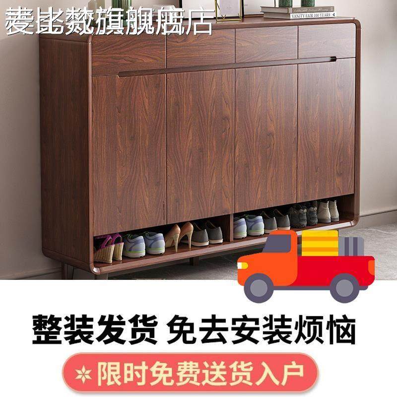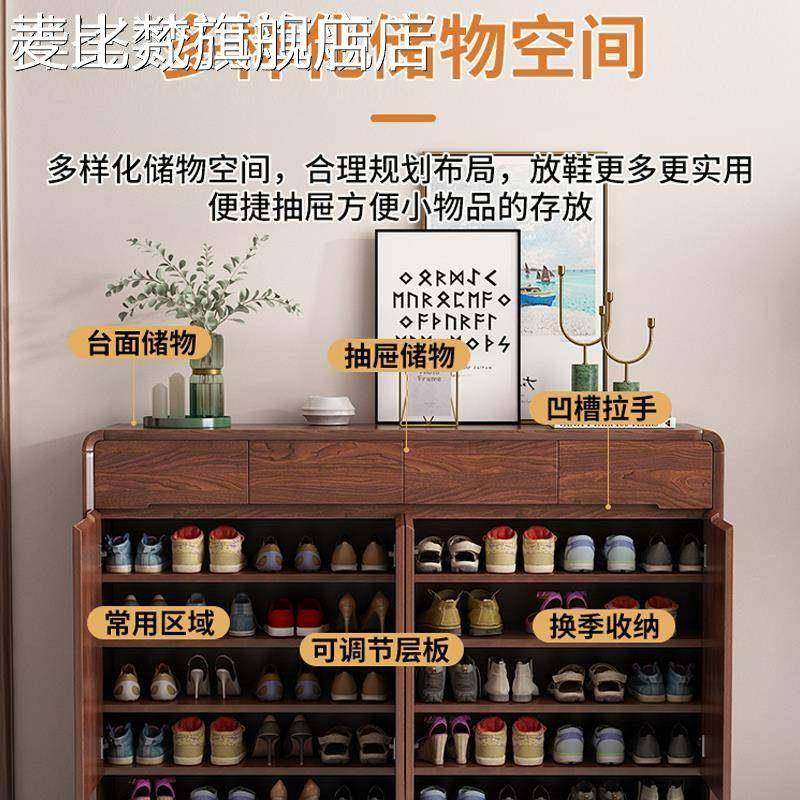 麦比梵新中式鞋柜纯全实木大容量家用门口客厅小户型入户玄关一体收纳柜床笠拉车