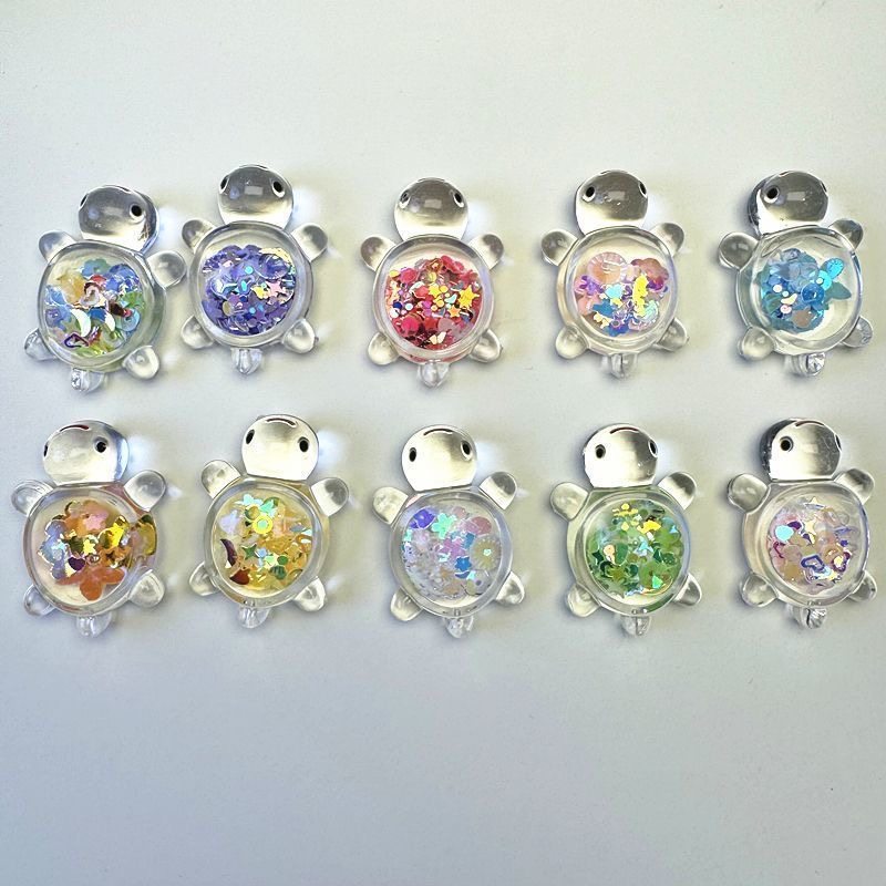 可爱新款潮玩亮片小乌龟diy玩具夜光奶油胶配件桌面摆件透明饰品
