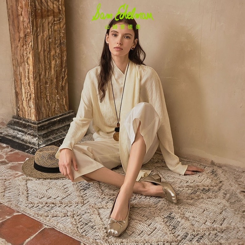SAM EDELMAN山姆爱德曼26春金色方头粗跟通勤芭蕾单鞋皮鞋女ROSA