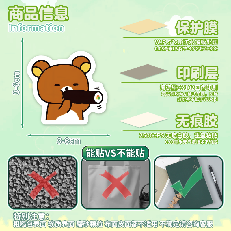轻松熊贴纸水杯装饰行李箱贴纸遮丑diy手账贴纸儿童女孩防水贴纸贴画