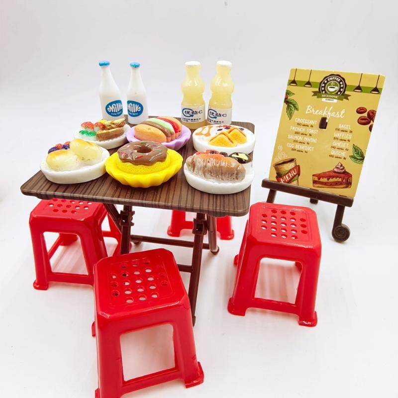 迷你折叠桌子微场景仿真食玩模型摆件娃娃屋迷你小餐桌凳微缩玩具