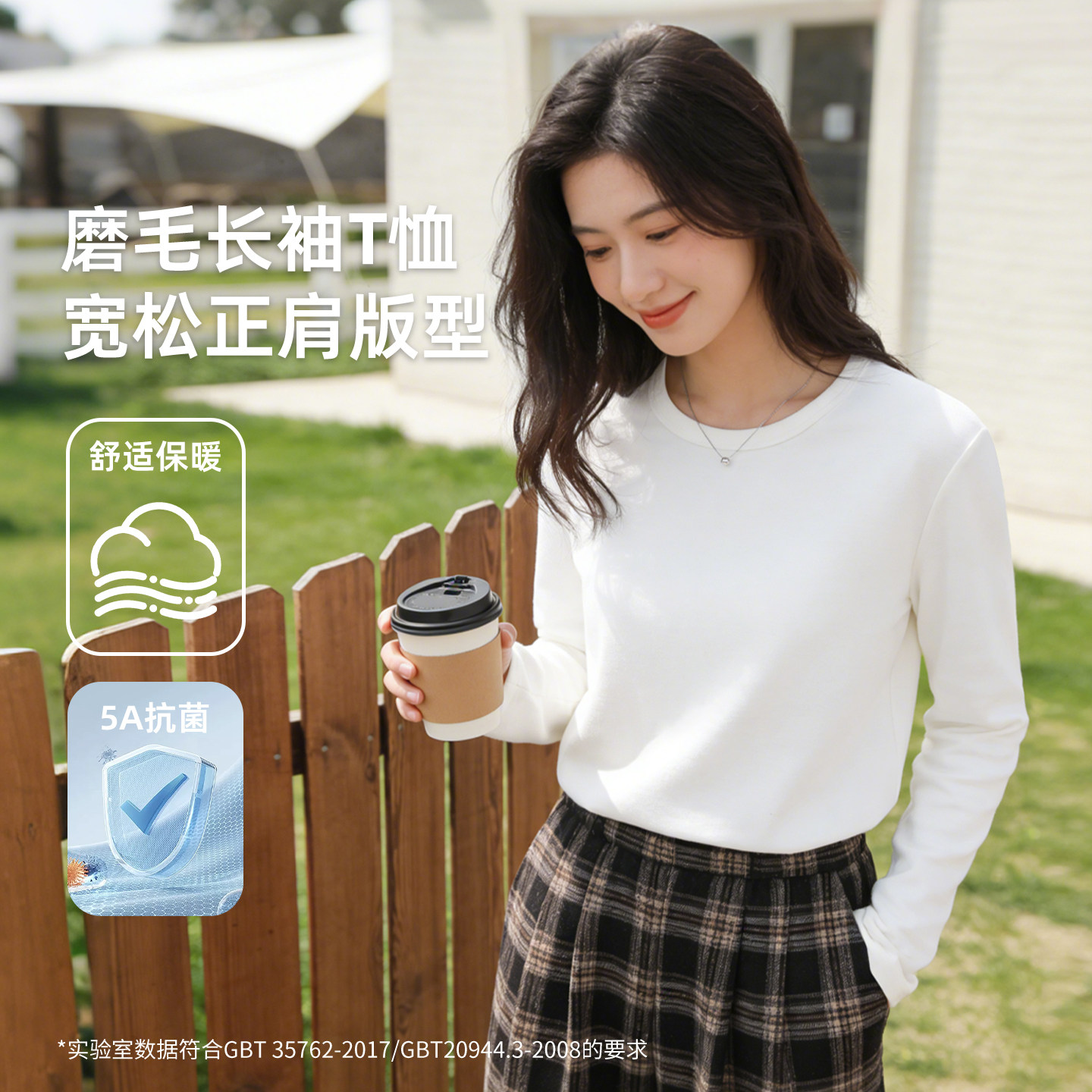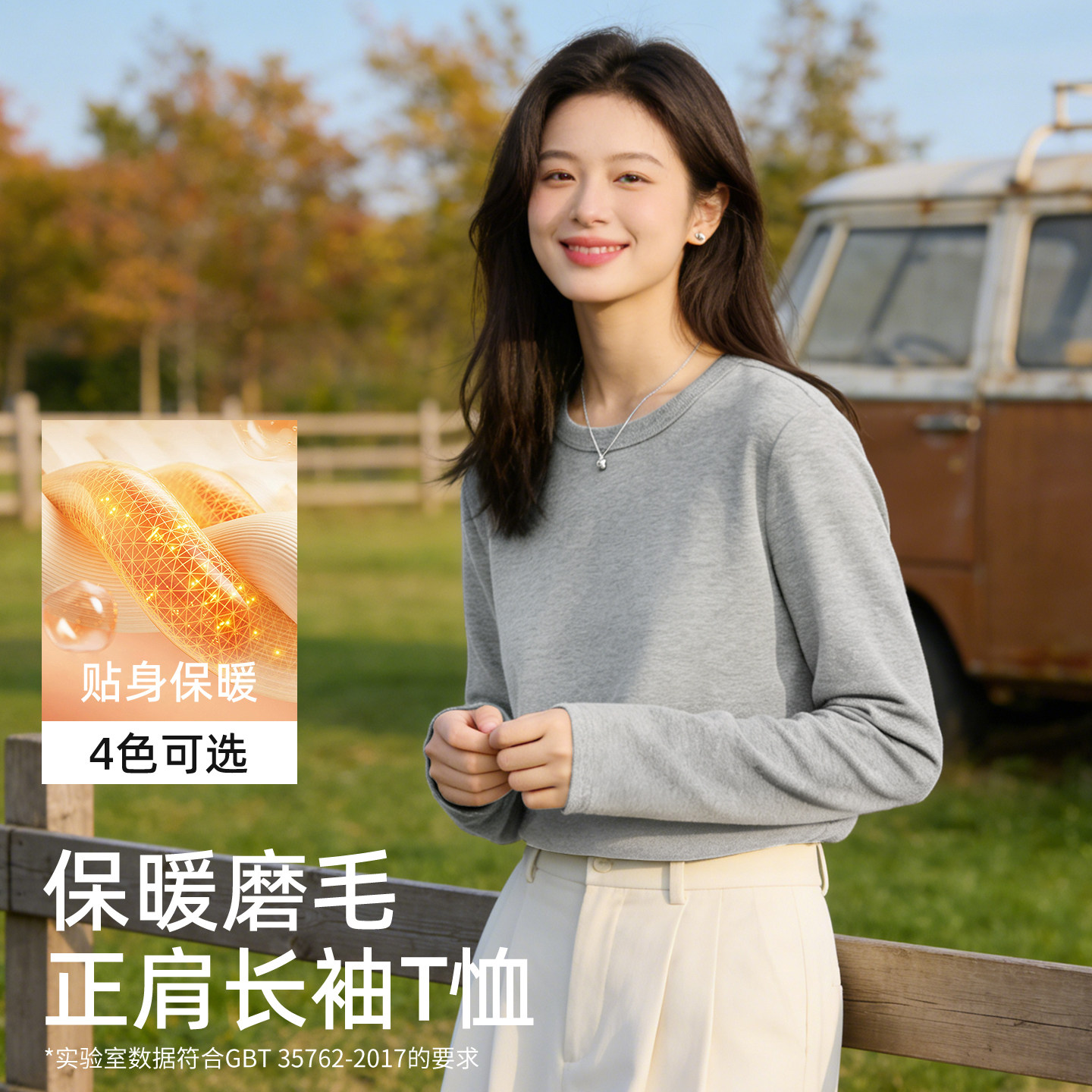 雪中飞正肩长袖t恤女春季2026新款内搭上衣女生双面磨绒打底衫PC