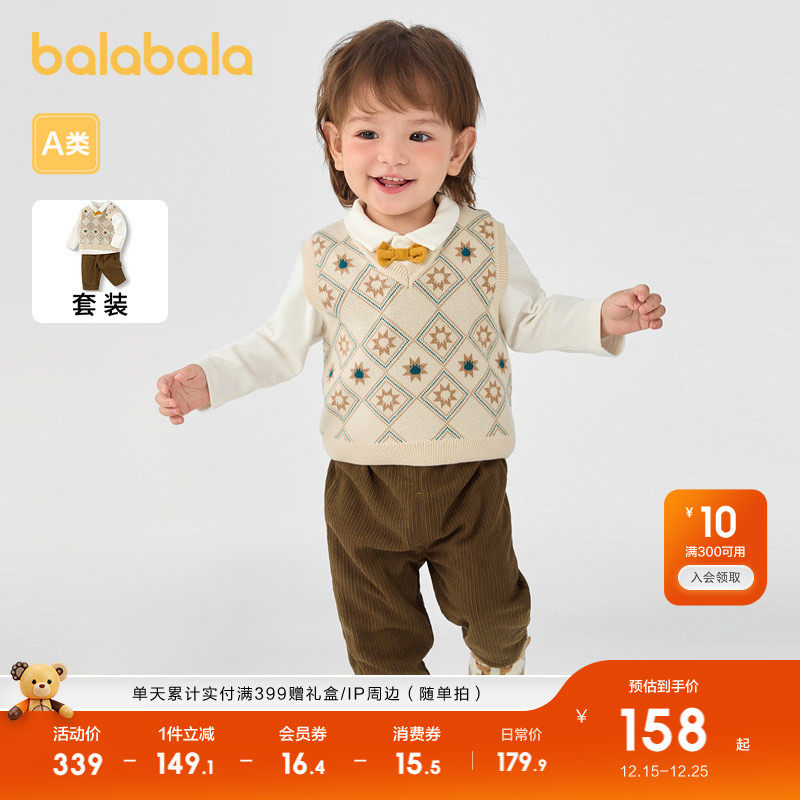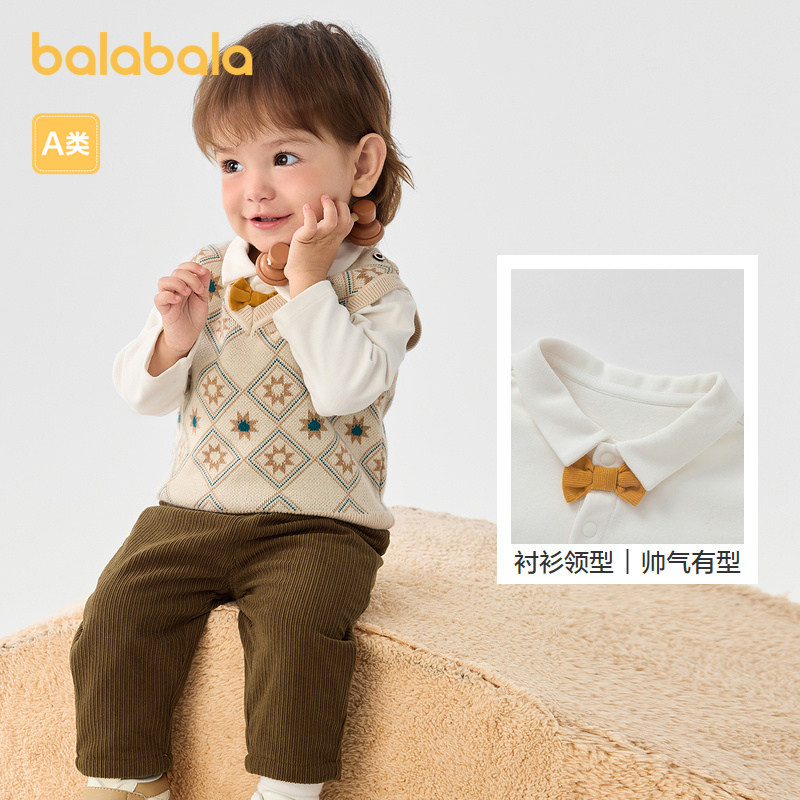 巴拉巴拉宝宝套装秋冬男童三件套加绒休闲套装洋气精致气质时尚潮