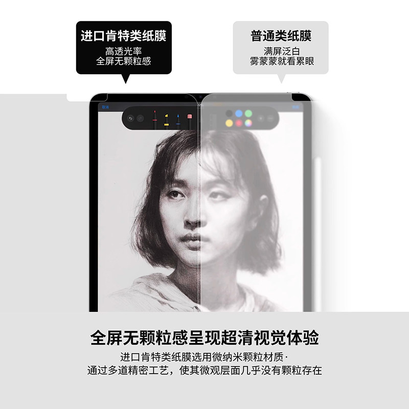 日本肯特高清磁吸ipad类纸膜ipadair67可拆卸ipadpro膜平板磨砂11寸12.9适用5苹果mini67纸质4画画膜13寸