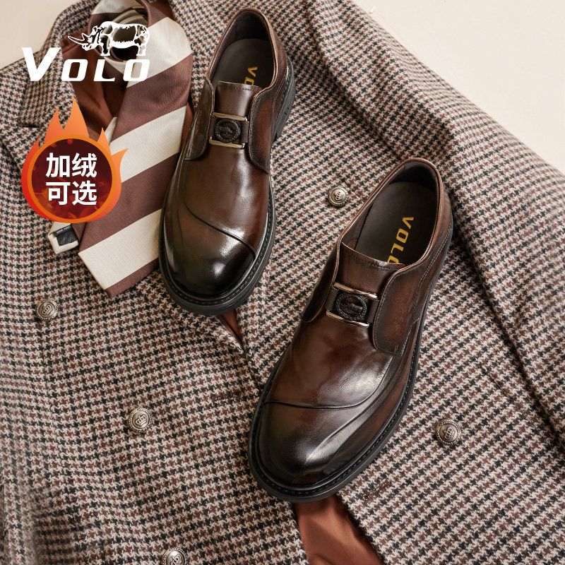 VOLO犀牛男士皮鞋男正装商务休闲皮鞋男款增高男鞋真皮大头德比鞋