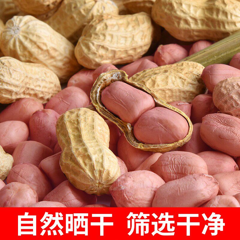 新鲜红皮带壳生花生四粒红花生米农家自种晒干货高产花生红皮花生