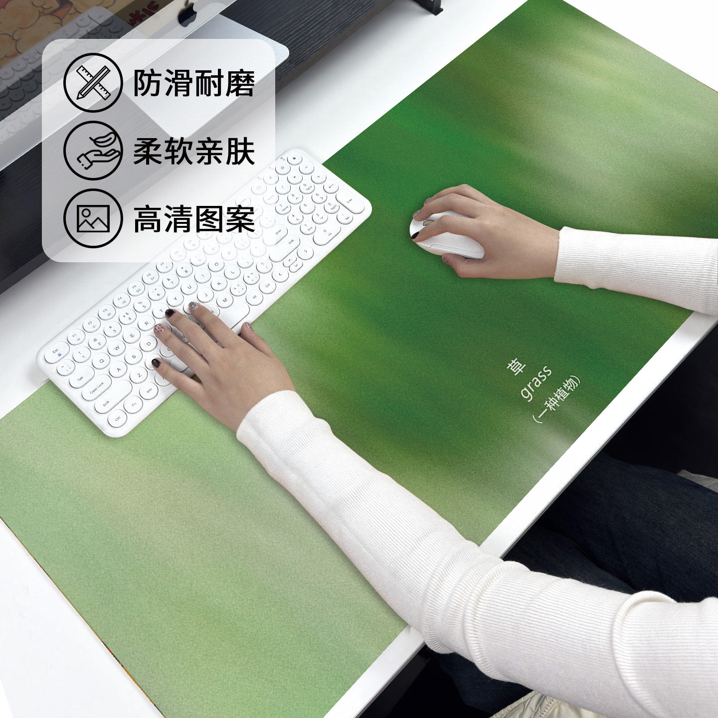极简晕染鼠标垫超大号打工人高颜值办公室小草文字电脑键盘滑鼠垫