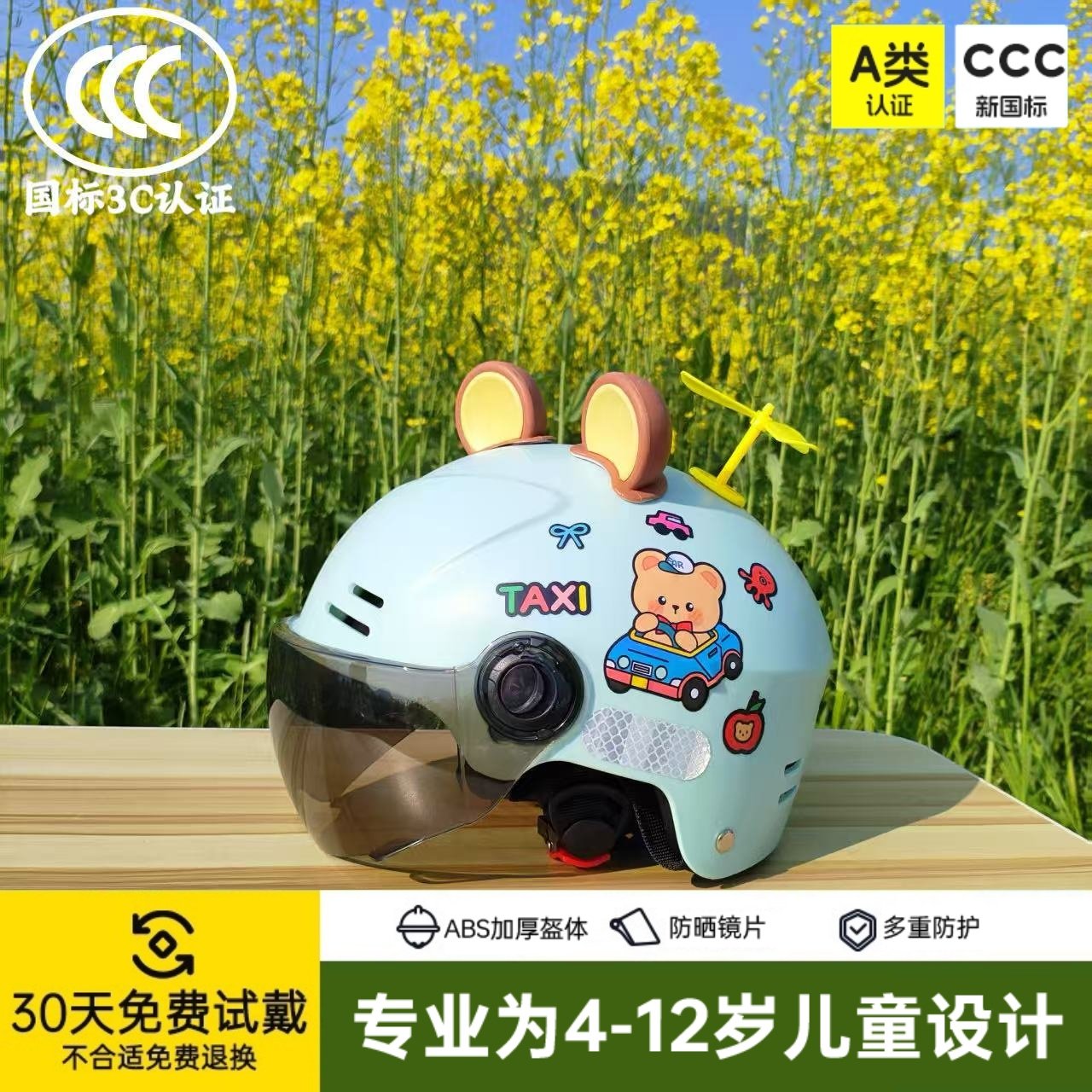 3C电动车儿童头盔四季小孩大童4-12岁幼童秋冬季防晒轻便式安全帽