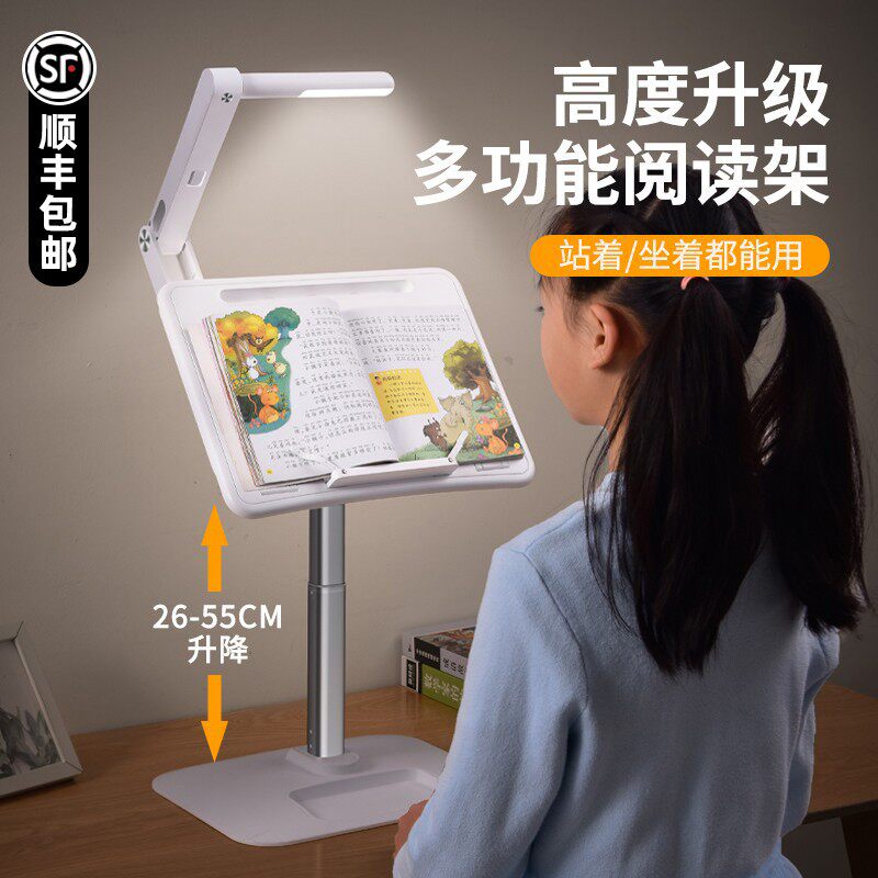 阅读架带护眼灯可升降落地儿童看书读书架子床上小书桌放宝宝绘本支撑架书立架多功能桌面学习支架夹书固定器