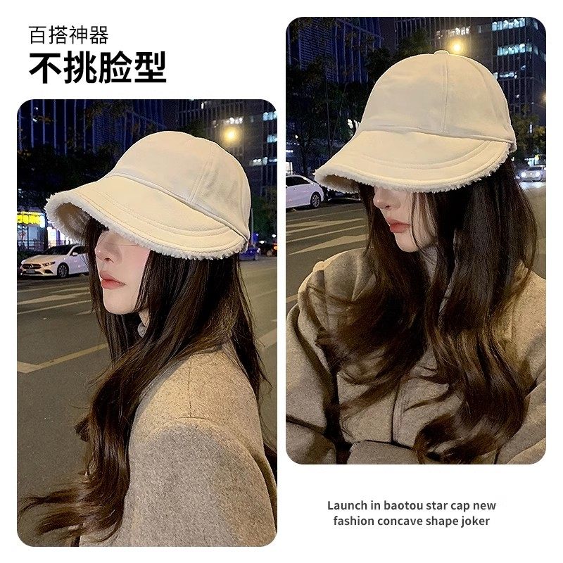 赵露思同款帽子加厚保暖渔夫帽大头围大脸羊羔毛鸭舌帽2025秋冬款
