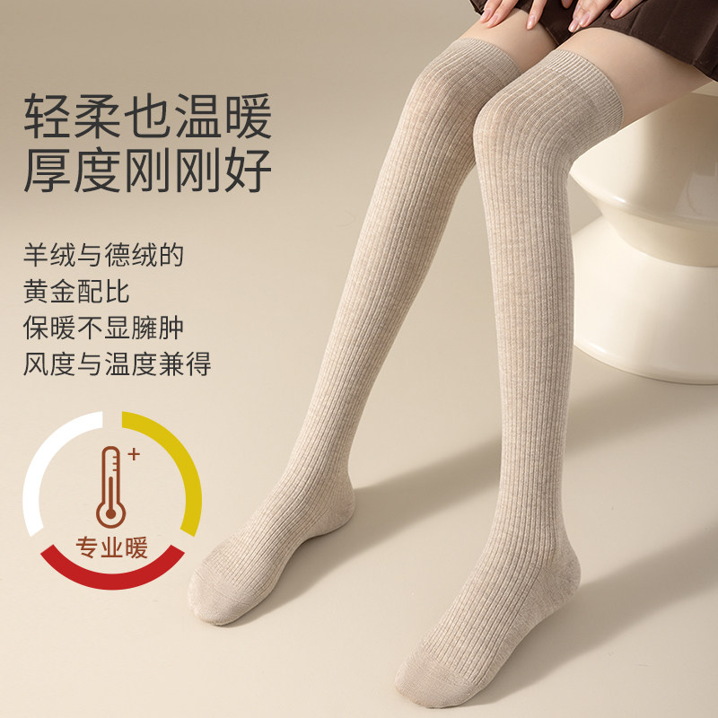 过膝袜子女羊毛春秋加长加厚保暖护膝袜美拉德秋冬长筒袜长腿羊绒