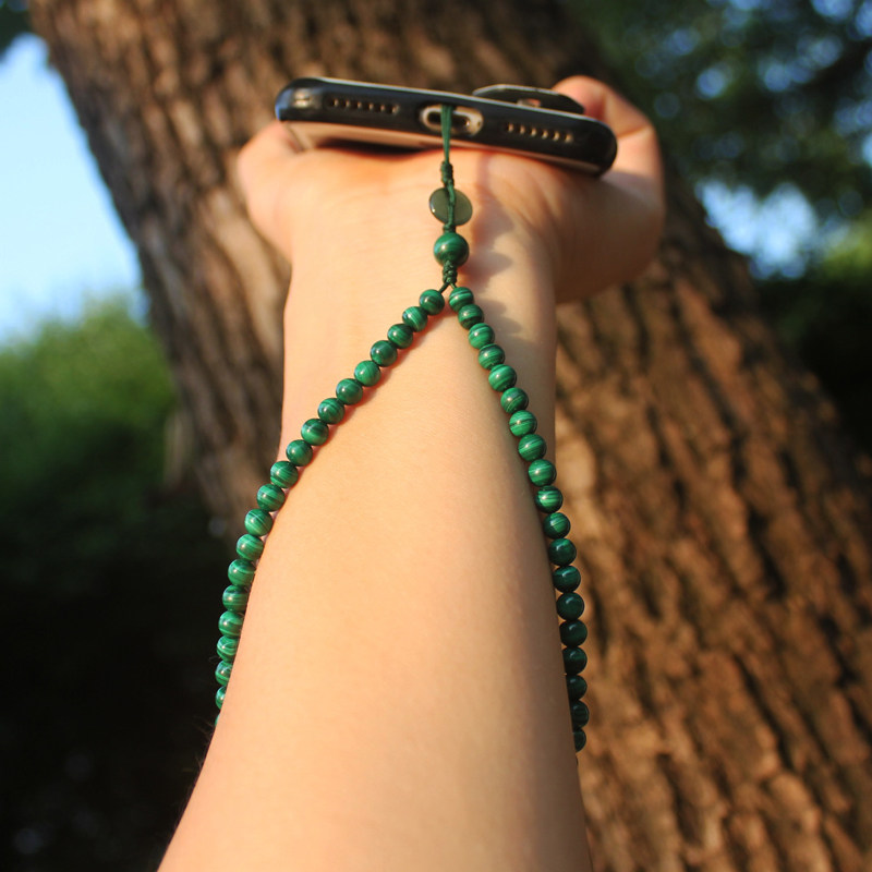 天然孔雀石手机链男女手腕挂绳短玉石挂件翡翠平安扣挂饰手机挂坠