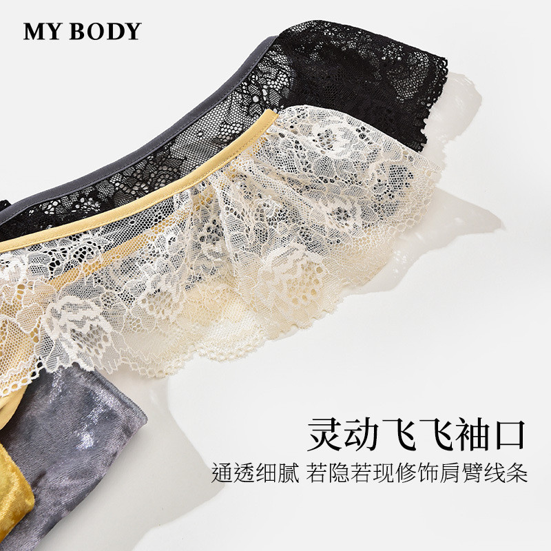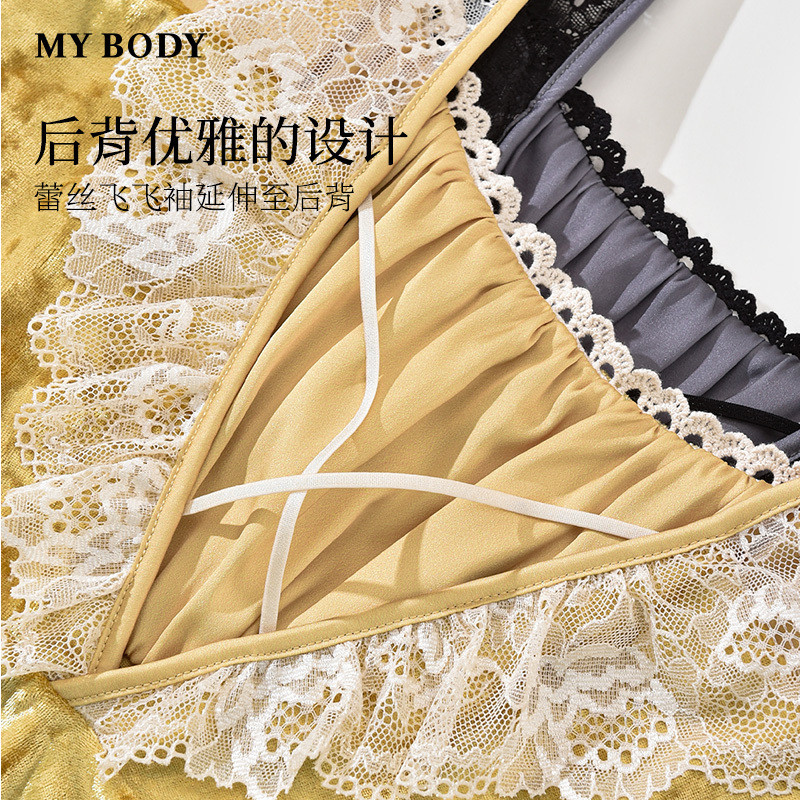 商场同款MYBODY2026春季轻奢丝绒吊带睡裙方领蕾丝飞飞袖家居服女