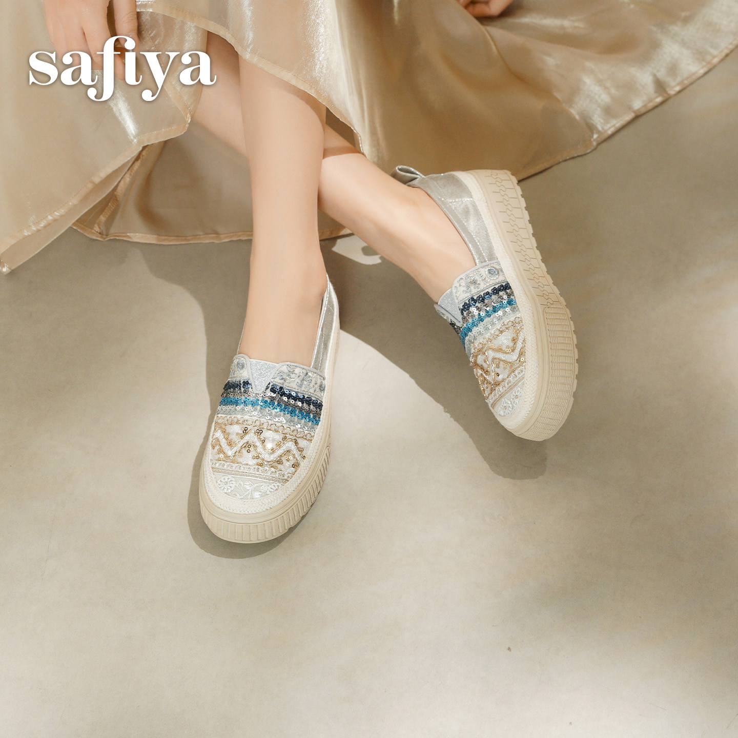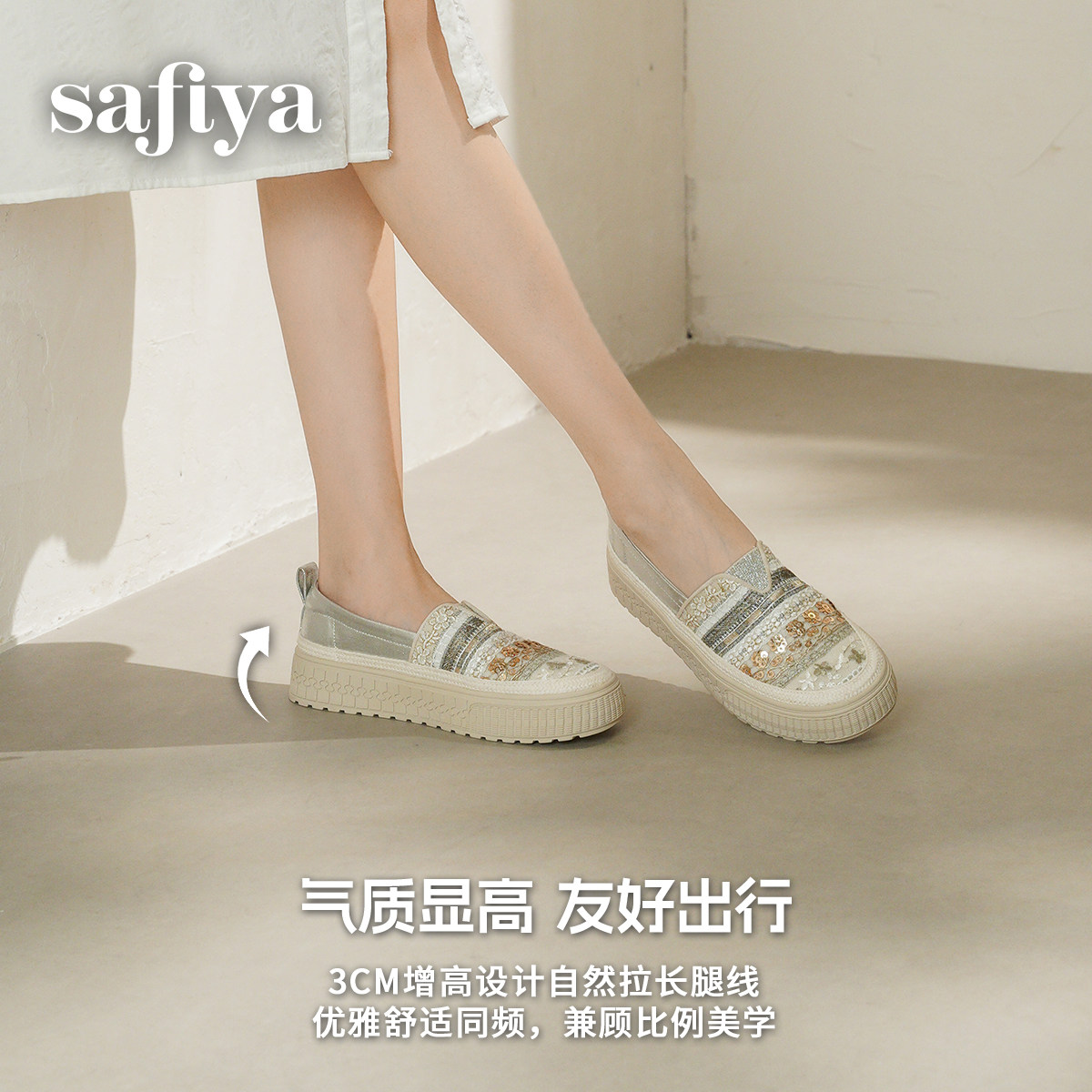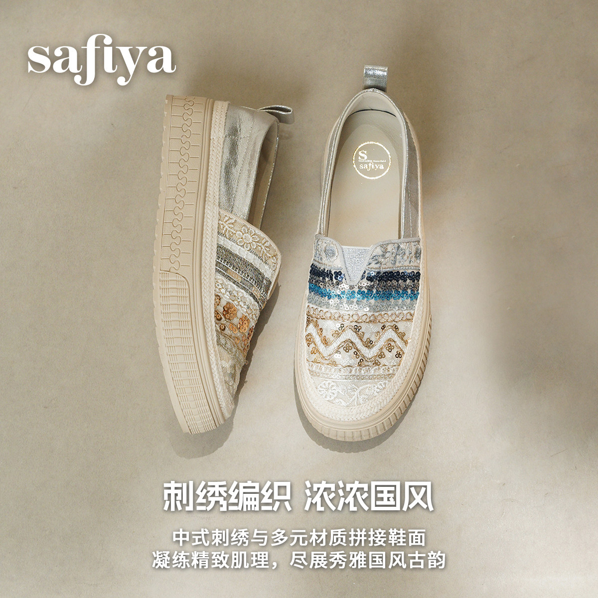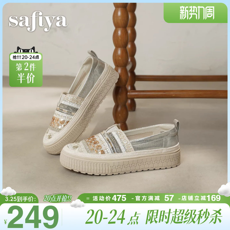 索菲娅2026春季新款民族风透气懒人甜美亮片休闲草编单鞋渔夫鞋女