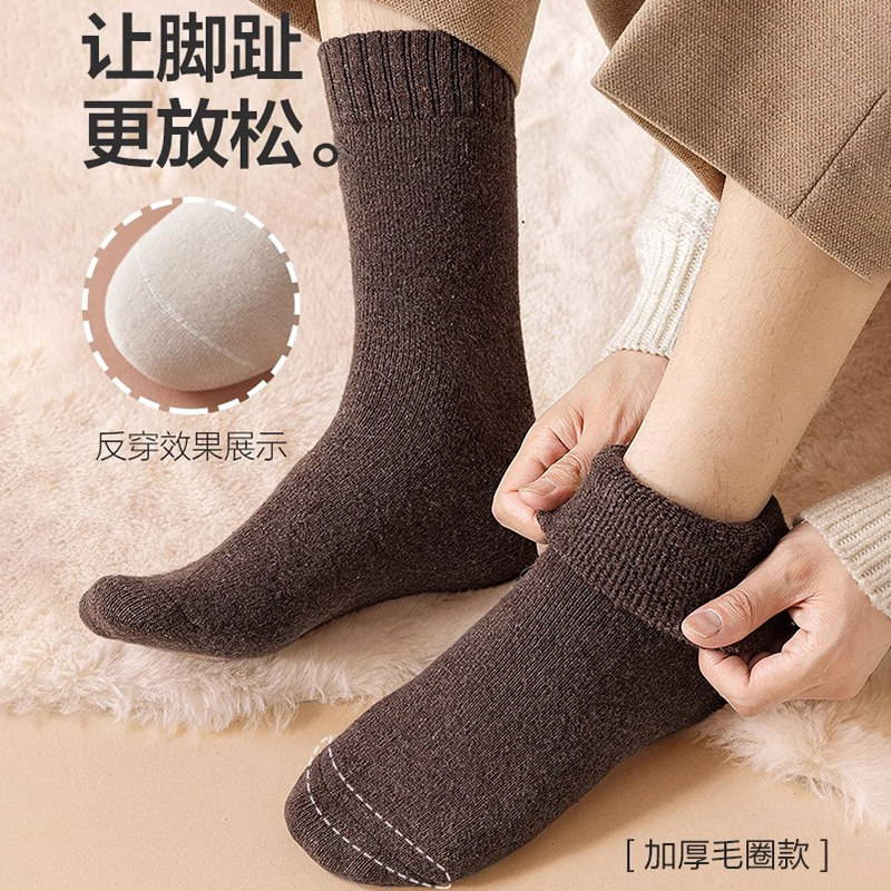厚袜子男款秋冬季加绒加厚保暖中筒袜男士棉袜毛圈地板袜长袜羊毛