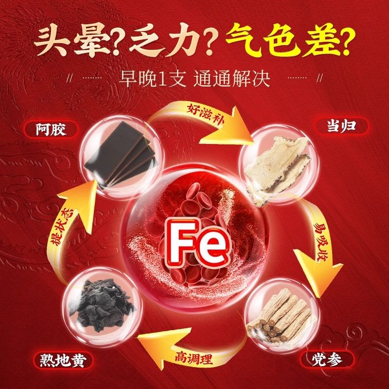 阿胶黄芪口服液补气血人参当归党参女生补铁养阿胶浆饮补血贫血