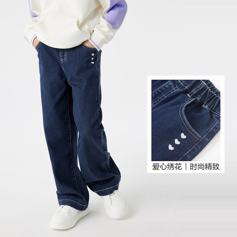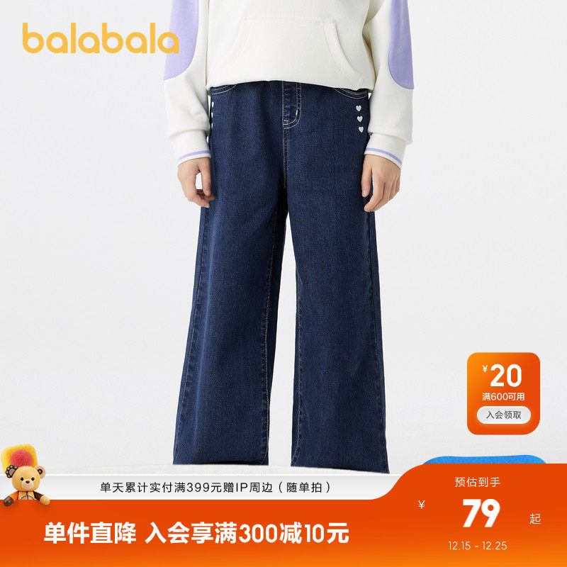 巴拉巴拉童装儿童直筒牛仔裤女童新款春秋百搭长裤子复古洋气甜美