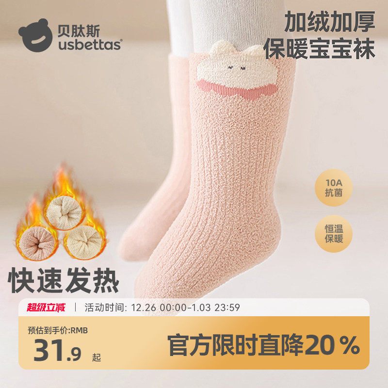 贝肽斯女童袜子秋冬加厚新生儿女宝宝袜子双面绒中筒棉袜a类S