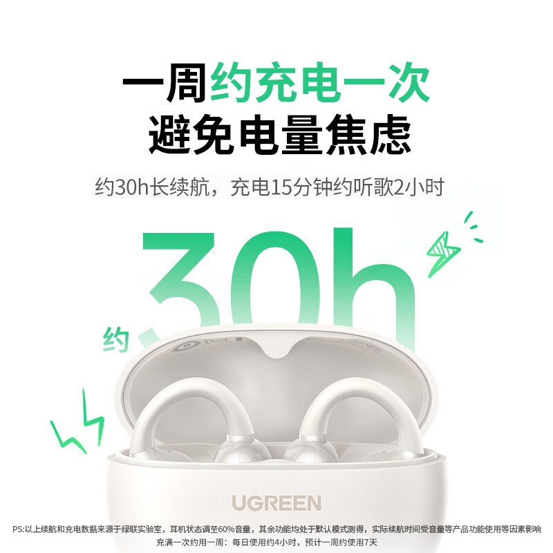 绿联S3蓝牙耳机耳夹无线开放式气骨传导耳机运动跑步夹耳2025新款