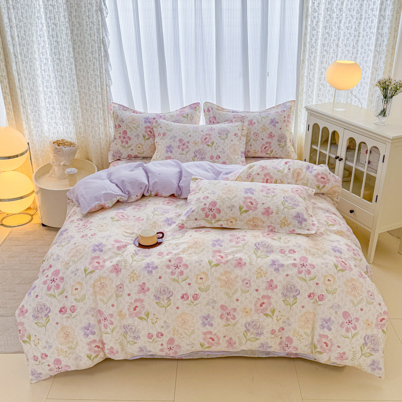 A类双层纱床上四件套纯棉全棉新款田园床单件被套被罩宿舍三件套4
