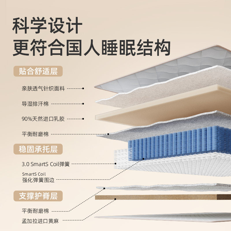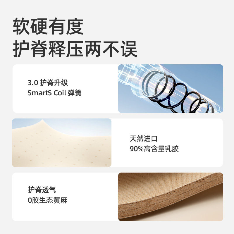 天然进口乳胶+进口生态黄麻 云端包裹 柔韧