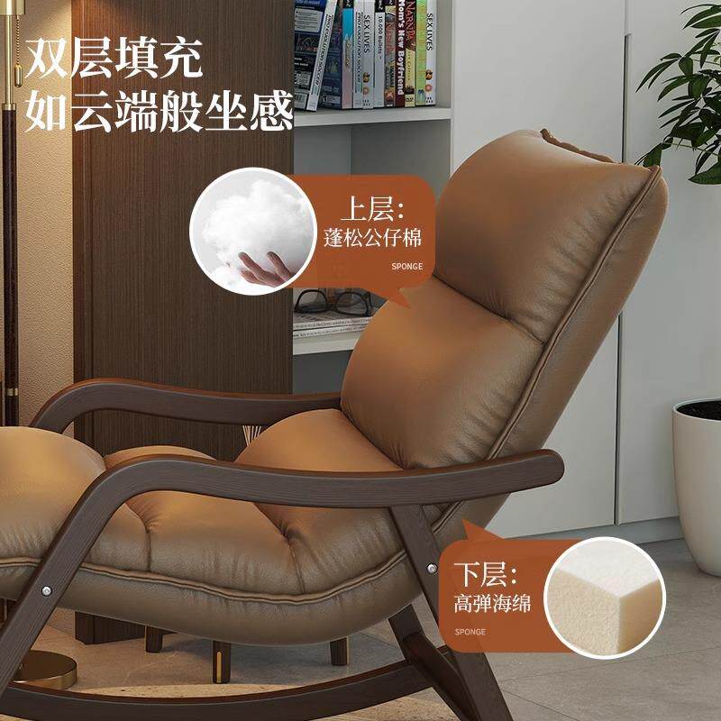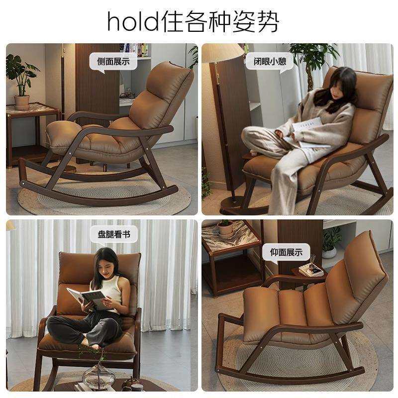 摇摇椅躺椅成人可睡中古实木摇椅单人新中式客厅懒人沙发休闲椅子