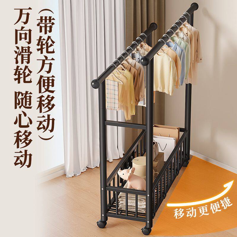 晾衣架落地家用可移动卧室凉衣架阳台挂衣服架子室内简易杆衣帽架