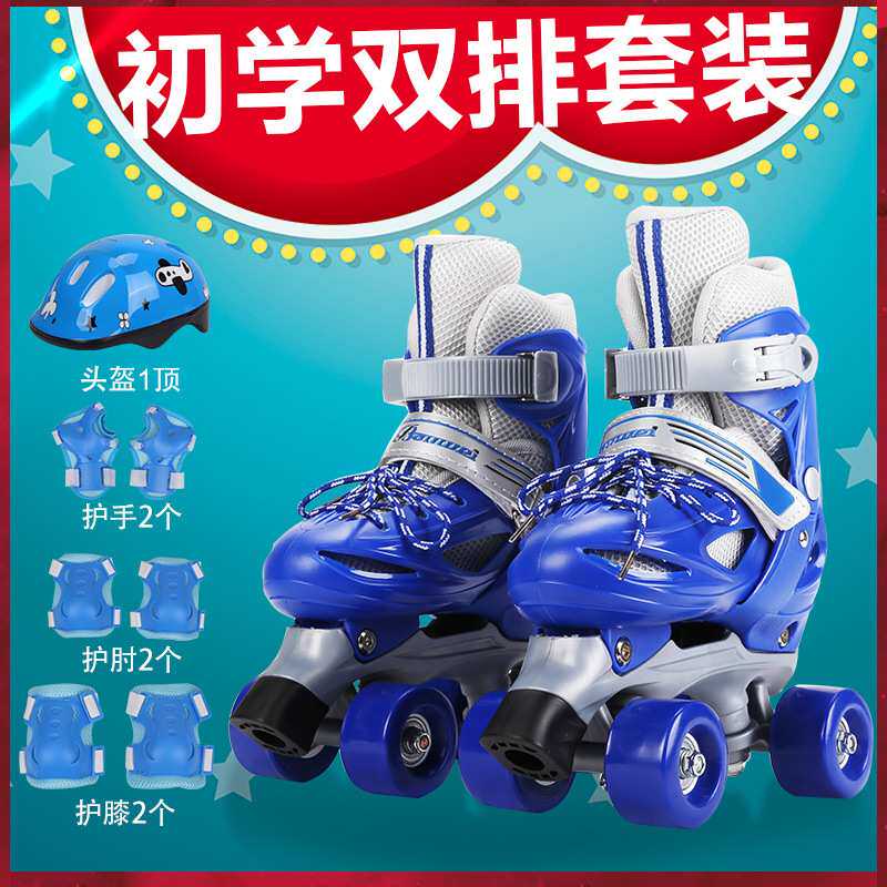 宝宝双排轮旱冰鞋溜冰鞋轮滑鞋四轮儿童二排滚轴滑轮女童男童防护