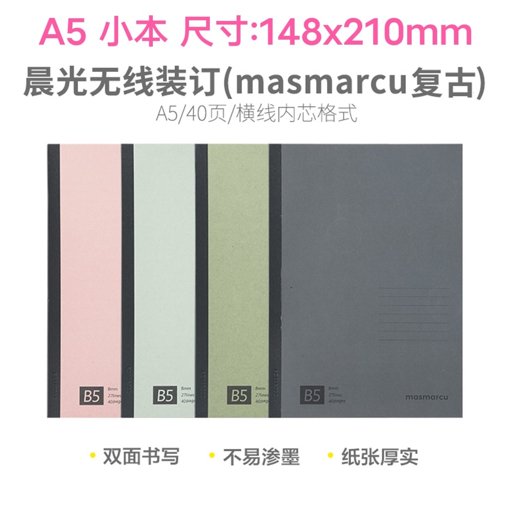 晨光无线装订本A5 40页(masmarcu复古)WA5413C学生B5笔记本作业本