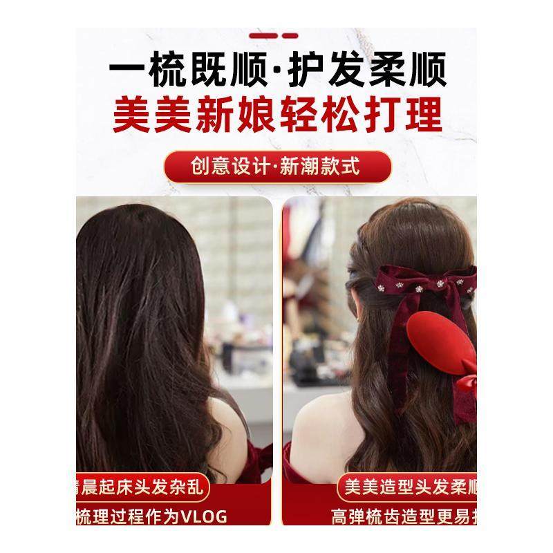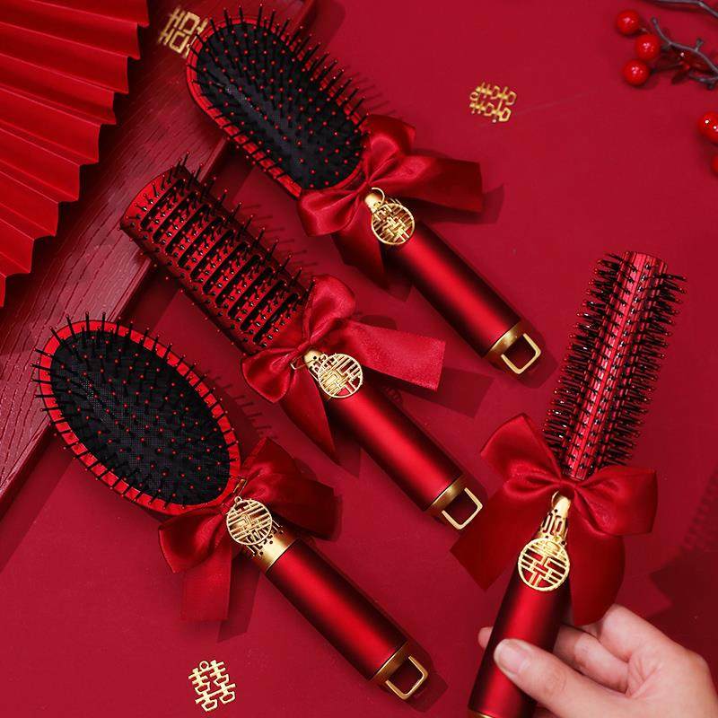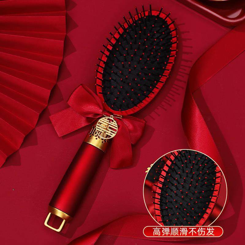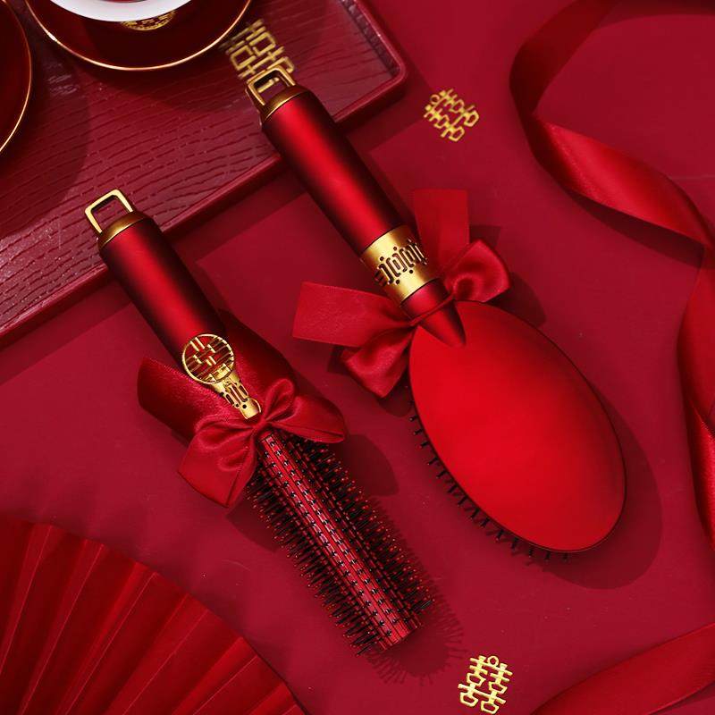 陪嫁红色梳子结婚一对气垫梳女家用喜梳镜子套装礼盒婚礼用品大全