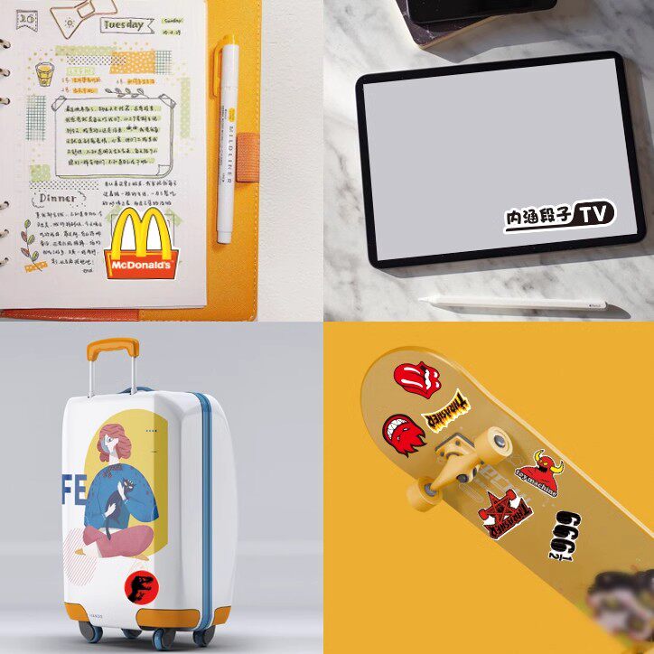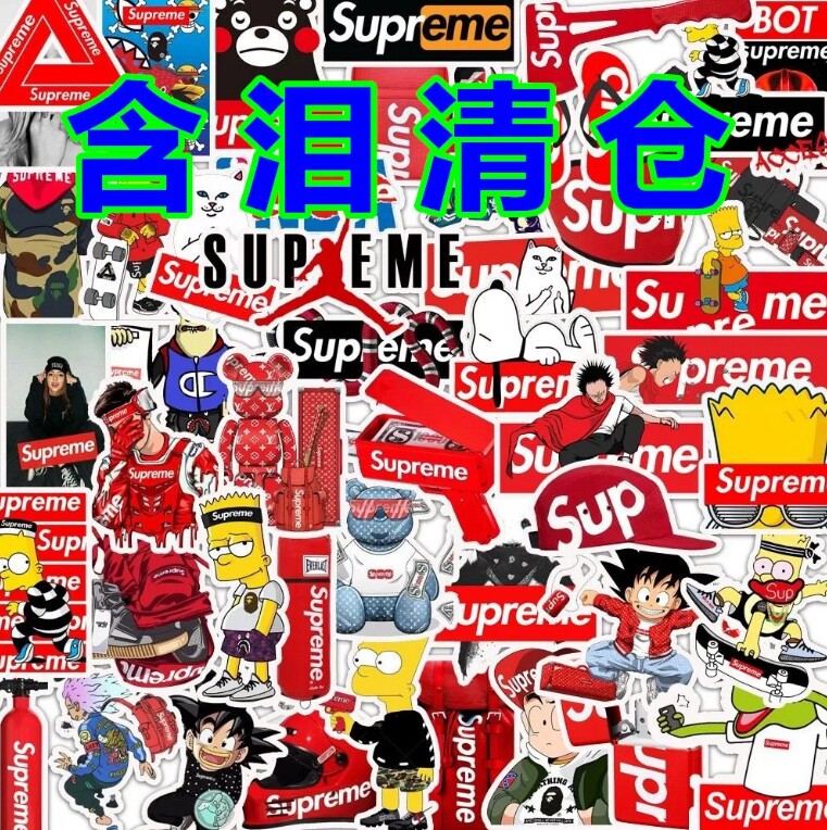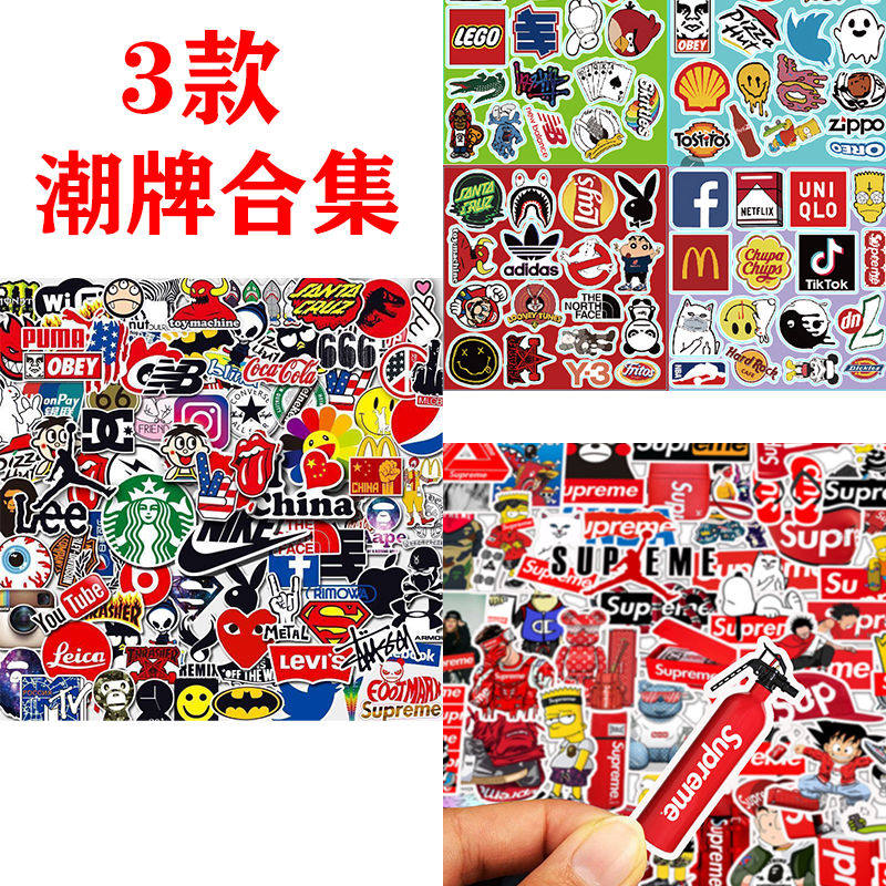 100张潮牌logo贴纸创意潮流涂鸦手机壳电脑装饰素材手账贴画防水